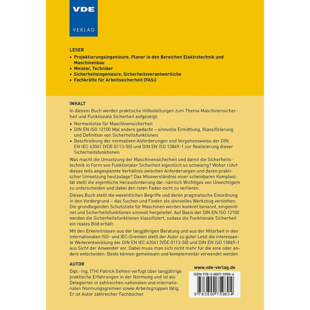 Funktionale Sicherheit und Sicherheitsfunktionen Erläuterungen zu DIN ENIEC 62061 (VDE 0113-50), DIN EN ISO 13849-1 und DIN EN ISO 12100, unterBerücksichtigung sicherheitstechnischer Kennwerte auf Basis von VDMA-Einheitsblatt 66413