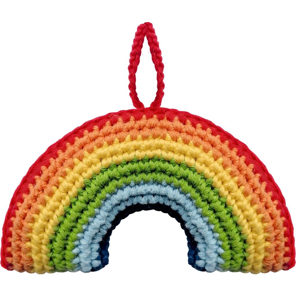 Geschenktasche mit Buch und gehäkeltem Regenbogen