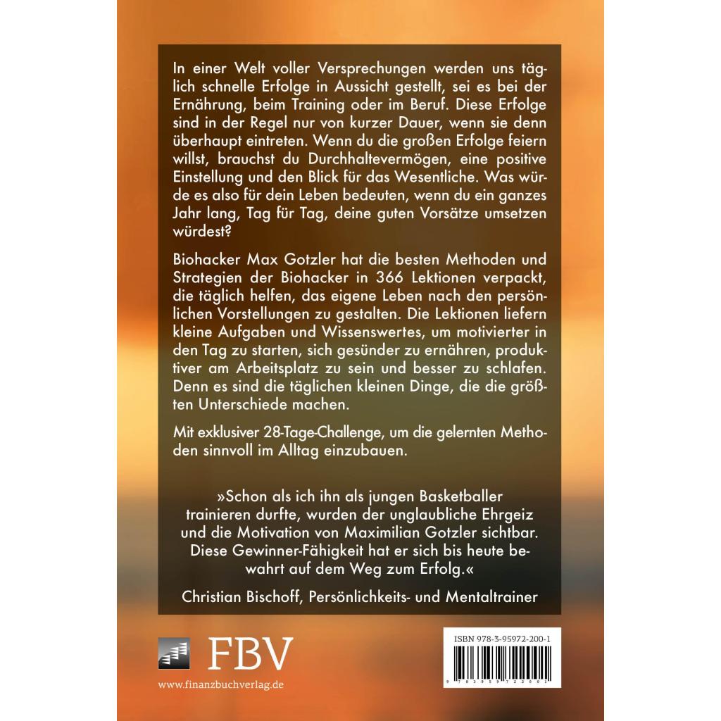 | Keyword: | Biohacker; Biohacking; Ernährung; Fitness; Flow; Geist; Gesundheit; Körper; Lebensqualität; Selbstoptimierung; Sport; besser schlafen |
