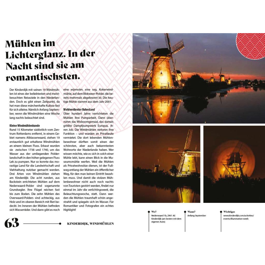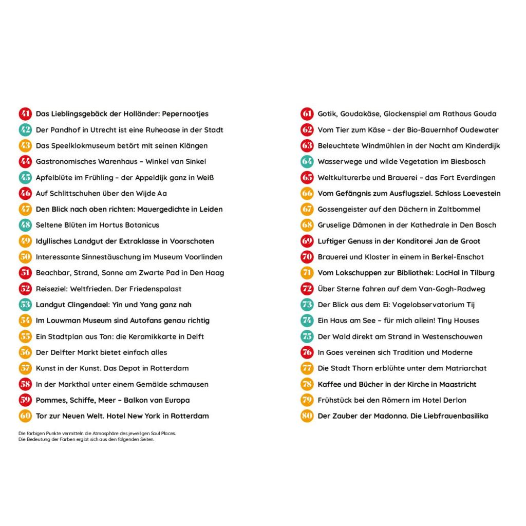 Soul Places - Tauchen Sie ein in die Seele der Niederlande! Jeder einzelne dieser Orte in den Niederlanden ist eine Reise wert und hat das Zeug, zum neuen Lieblings- und Sehnsuchtsort zu werden. Die malerischen Backsteingassen des weißen Städtchens Thorn, die Markthalle von Rotterdam mit ihrem gigantischen Deckengemälde oder der zugefrorene Wijde Aa in Südholland, der zum Schlittschuhlaufen einlädt: All dies sind Soul Places , Orte, die den Menschen etwas bedeuten und von der Geschichte des Landes erzählen, die das Zeug haben, zu den schönsten Reiseerinnerungen und zu neuen Glücksorten zu werden. Autorin Ulrike Grafberger lebt seit fast 20 Jahren in den Niederlanden. Anhand von 80 Soul Places lädt Sie auf eine Reise zur Seele der Niederlande ein, führt zu goldfarbenen Stränden, abgelegenen Pommesbuden und kleinen Deichen, von denen der Blick auf unzählige weiße Apfelblüten fällt und verspricht: "Am Ende dieser Reise werden Sie die Niederlande in ihr Herz geschlossen haben." Entdecken Sie Ihre Soul Places in den Niederlanden, zum Beispiel: Am Ende des Wattenmeers: Zwarte Haan Im Bäckereimuseum in Hattem duftet es wie bei Oma Amsterdams Vondelpark: Entspannung vom Trubel Den Blick nach oben richten: Mauergedichte in Leiden Beleuchtete Windmühlen in der Nacht am Kinderdijk Kaffee und Bücher in der Kirche in Maastricht Soul Places Niederlande ist eine Inspiration für Kenner:innen und ein Wegweiser für alle, die die Niederlande neu für sich entdecken wollen. Soul Places: Inspirierend, einzigartig, aus dem Reise Know-How Verlag