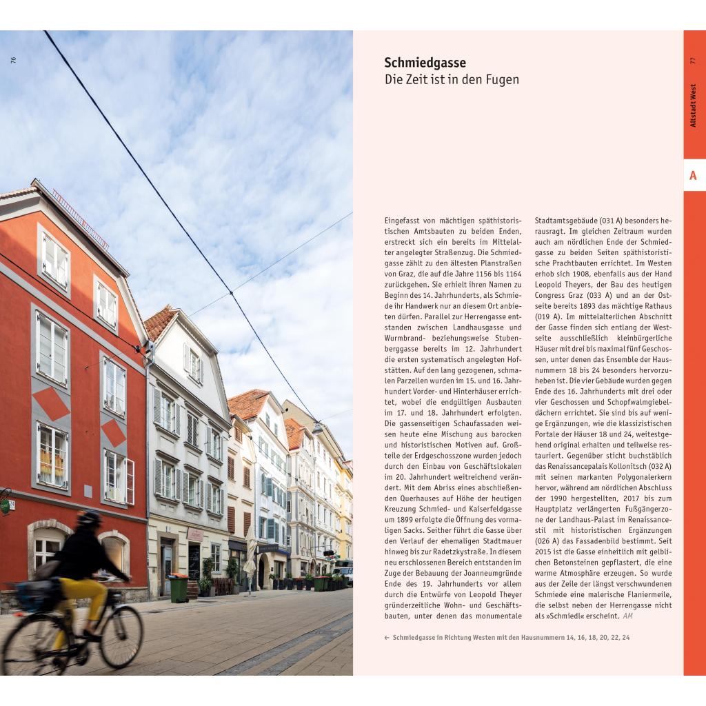 Graz gilt als Österreichs Hauptstadt der Architektur: Die zweitgrößte Stadt der Alpenrepublik wartet sowohl mit dem UNESCO-Weltkulturerbe ihrer Altstadt als auch mit den experimentellen Bauten der Grazer Schule des späten 20. Jahrhunderts auf. Seit 2011 UNESCO City of Design, besticht Graz durch herausragende Beispiele historischer und zeitgenössischer Architektur wie etwa das Renaissanceschloss Eggenberg oder auch das friendly alien genannte Kunsthaus. Die aktualisierte und um 60 Bauwerke erweiterte zweite Auflage des Architekturführers Graz behandelt alle relevanten Gebäude vom 12. bis zum 21. Jahrhundert. Zwölf Touren führen zu über 300 Bauten, Straßenzügen und Plätzen. Vertiefende Schwerpunkttexte geben Einblicke in die Hintergründe des Baugeschehens und betten sie in einen kunst- und kulturgeschichtlichen Kontext ein.
