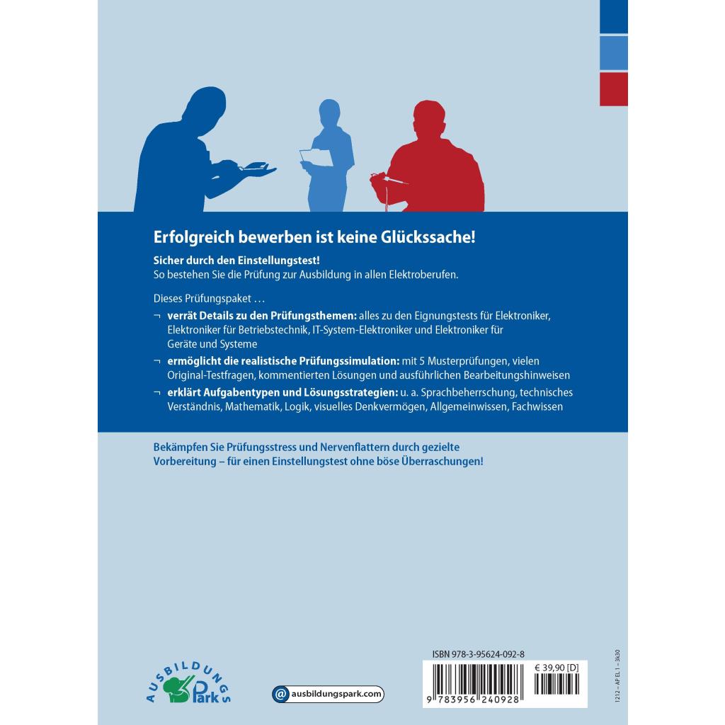 Sicher durch den Einstellungstest! So bestehen Sie die Prüfung zur Ausbildung in allen Elektroberufen. Dieses Prüfungspaket ... ¿ verrät Details zu den Prüfungsthemen: alles zu den Eignungstests für Elektroniker, Elektroniker für Betriebstechnik, IT-System-Elektroniker und Elektroniker für Geräte und Systeme ¿ ermöglicht die realistische Prüfungssimulation: mit 5 Musterprüfungen, vielen Original-Testfragen, kommentierten Lösungen und ausführlichen Bearbeitungshinweisen ¿ erklärt Aufgabentypen und Lösungsstrategien: u. a. Sprachbeherrschung, technisches Verständnis, Mathematik, Logik, visuelles Denkvermögen, Allgemeinwissen, Fachwissen Erfolgreich bewerben ist keine Glückssache! Bekämpfen Sie Prüfungsstress und Nervenflattern durch gezielte Vorbereitung - für einen Einstellungstest ohne böse Überraschungen!