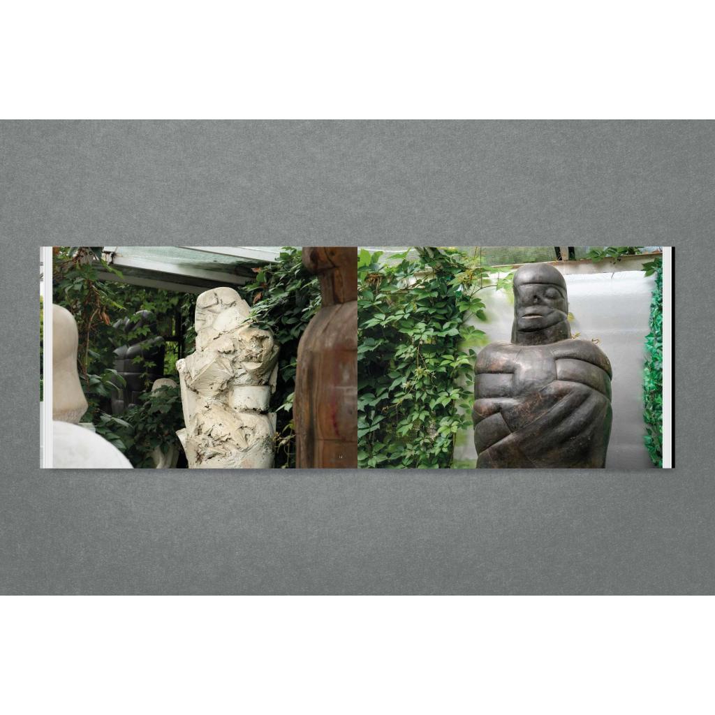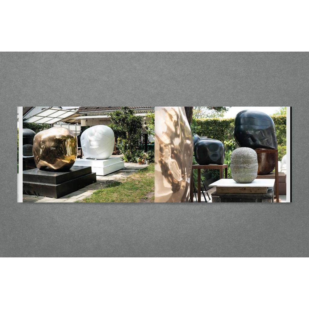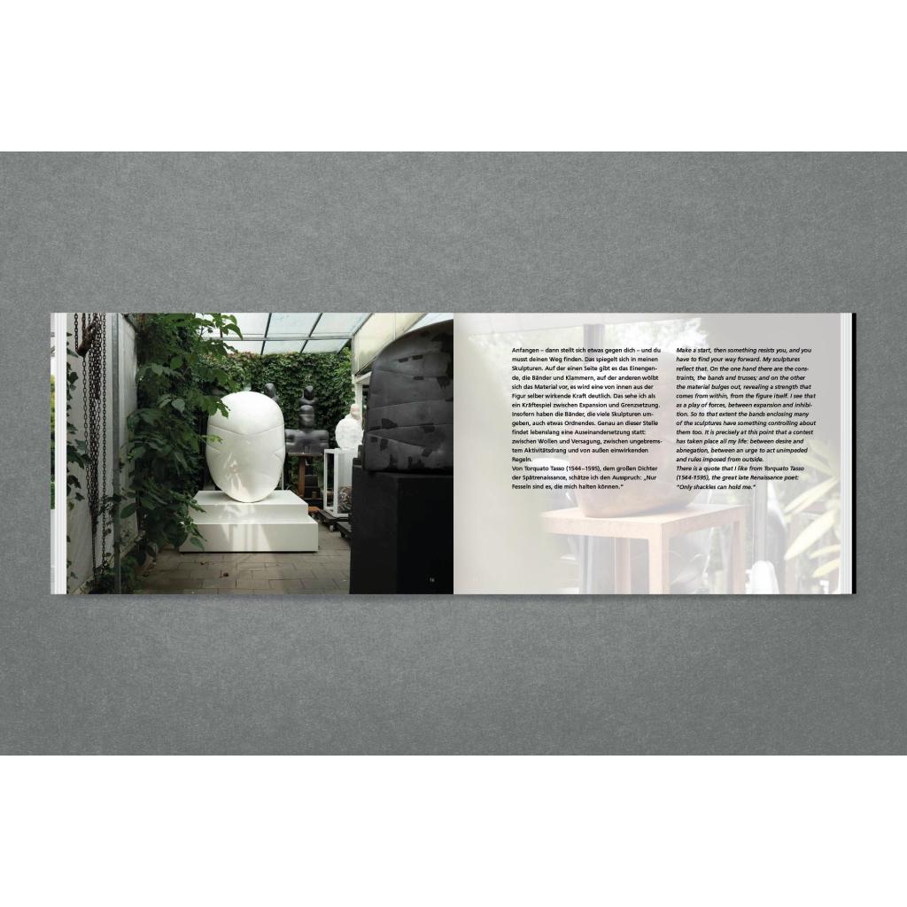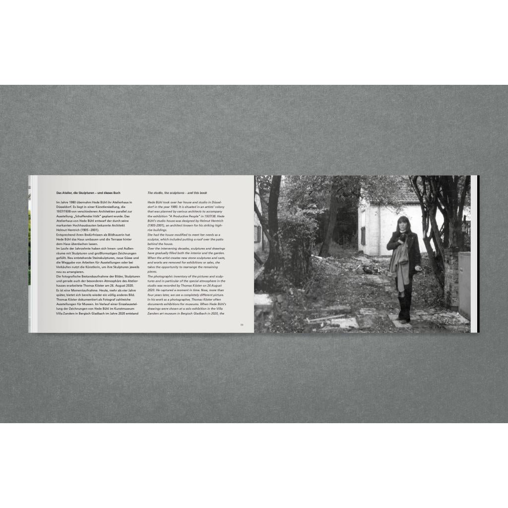 Das Werk von Hede Bühl (*1940) fokussiert sich seit vielen Jahren auf ein zentrales Thema: die menschliche Figur. Dabei geht es der Künstlerin nicht um individuellen Ausdruck, sondern um grundsätzliche skulpturale Fragen. Ihre bekannteste und umfangreichste Werkgruppe sind die Kopfskulpturen, die Bühl aus Stein, Bronze, seltener aus Aluminium, Blei oder Kunststoff fertigt. Sie sind einerseits auf einfachste Grundformen reduziert, andererseits aber durch Dehnungen, Wölbungen, Bänder und Klammern akzentuiert, die zu zahlreichen Interpretationen herausfordern, aber nie ihr Geheimnis und ihre Mehrdeutigkeit preisgeben. Im Jahre 1980 übernahm Hede Bühl ein Atelierhaus in Düsseldorf, das sie nach ihren Bedürfnissen umbauen ließ und in dem sie bis heute lebt und arbeitet. Im Laufe der Jahrzehnte haben sich Innen- und Außenräume mit Skulpturen und großformatigen Zeichnungen gefüllt, die in immer neuen Arrangements ein sich ständig änderndes Bild abgeben. In einer Art Bestandsaufnahme dokumentierte Thomas Köster im August 2020 innerhalb eines Tages die besondere Atmosphäre im Atelier der Künstlerin. Bühl akzeptierte den "fremden Blick" unter der Prämisse, die spätere Bildauswahl mitbestimmen zu dürfen. Das Ergebnis ist ein Buch, das einen intimen Einblick in das Arbeits- und Lebensumfeld der Künstlerin ermöglicht und durch persönliche Erinnerungen in die Geschichte des Hauses und ihre künstlerische Arbeit einführt.