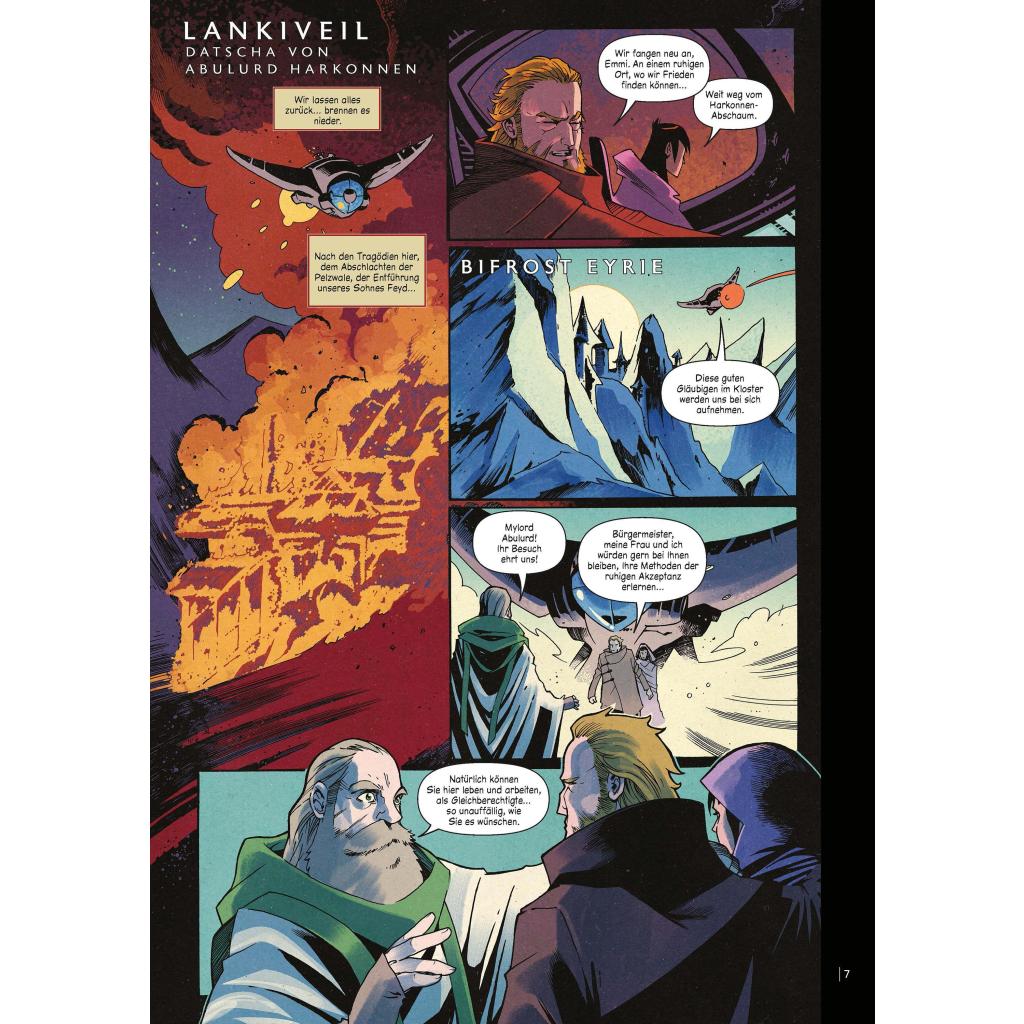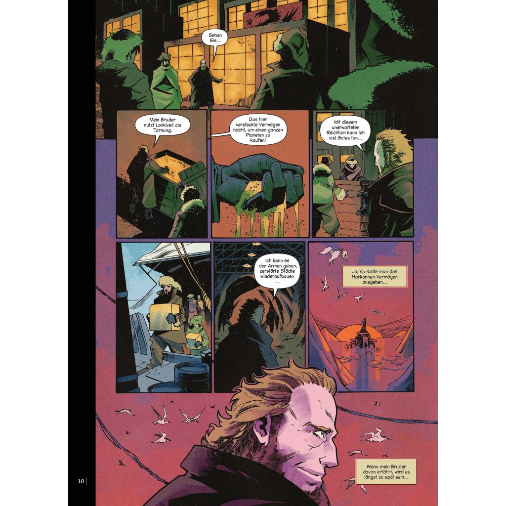 Die offizielle Graphic-Novel-Adaption des zweiten Prequels von 'Dune' - Ausgezeichnet mit dem Dragon Award 2023! Atomare Bedrohungen und prophetische Visionen, grausames Schurkentum und Pläne für Tod und Vernichtung, Heiratsanträge und unsterbliche Loyalität, politisches Ränkespiel und wahrer Edelmut - die potenziellen Gefahren und gewinnversprechenden Möglichkeiten, die Leto Atreides, seine Gefährten und Widersacher bewältigen müssen, sind endlos! Der Zorn des Barons Harkonnen ist entfesselt, und bevor diese Tragödie ein Ende findet, wird Leto einen bitteren Abschied nehmen müssen... Auf 500 Exemplare limitierte Vorzugsausgabe mit Variantcover und Kunstdruck. Abschlussband der Serie