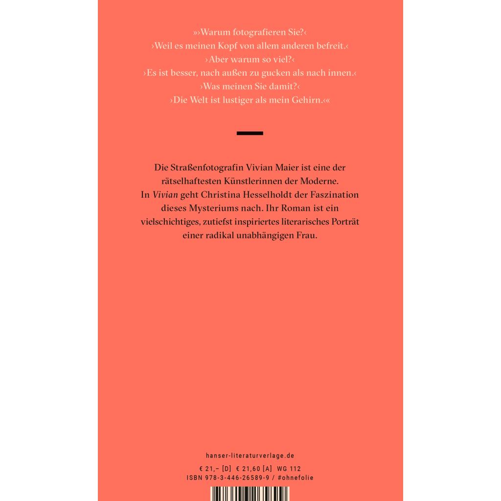 Ein vielschichtiges, zutiefst inspiriertes literarisches Porträt über die rätselhafte Straßenfotografin Vivian Maier. Christina Hesselholdt schreibt den ersten Roman über diese radikal unabhängige Frau. Als sie im Jahr 2009 stirbt, ist Vivian Maier eine einsame, verarmte Frau, die praktische Männerschuhe bevorzugte und skurrilerweise ständig eine Kamera bei sich trug. Kurz darauf avanciert sie posthum zur genialen Straßenfotografin: In ihrer Wohnung findet man einen riesigen Bilderschatz - an die 200.000 Fotos hat Vivian Maier über die Jahre aufgenommen, die meisten davon jedoch nie entwickelt. Wer war diese Frau, und was hat sie dazu bewogen, ein fotografisches Werk zu schaffen, ohne es je sichtbar zu machen? In Vivian geht Christina Hesselholdt der Faszination dieses Mysteriums nach. Ihr Roman ist ein vielschichtiges, zutiefst inspiriertes literarisches Porträt einer radikal unabhängigen Frau.