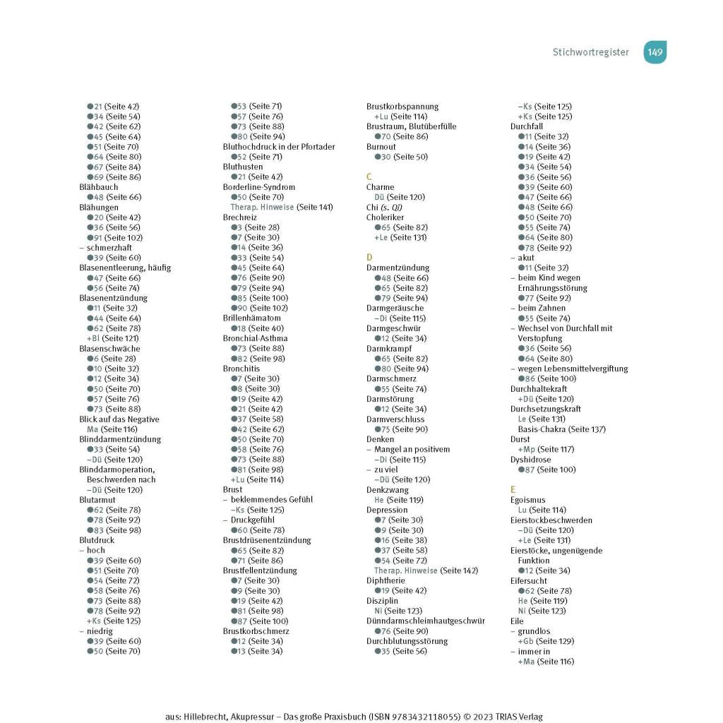 | Keyword: | Akupressur; Akupunktur; Chakra; Energiefluss; Kopfschmerzen; Massage; Meridiane; Migräne; Nebenhöhlenentzündung; Qi; Reflexzonenmassage; Rückenschmerzen; Schlaflosigkeit; Schlafstörungen; Schmerztherapie; Selbstheilung; TCM; Tao; Wechseljahresbeschwerden; Yin und Yang; Übelkeit |