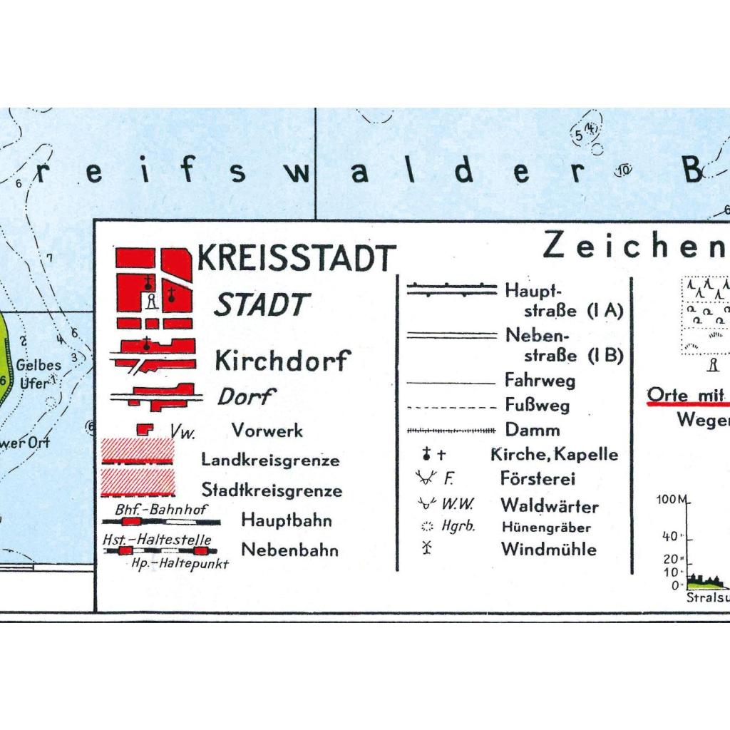 Format (Breite x Höhe) 51 x 58 cm - Nachdruck -- Lieferung gerollt in einer sehr stabilen Pappversandhülse - bis 72 cm lang - 250 g Informationen: Die Karte erschien kurz nach der Gründung der DDR (7.10.1949) bei Justus Perthes in Gotha und wurde am 17.11.1949 vom Land Thüringen, Ministerium für Wirtschaft in Erfurt genehmigt. Das Streckennetz der Rügenschen Kleinbahn ist gut zu erkennen. Auf der Karte sind eingezeichnet: die Stadtkreis- und Landkreisgrenzen, Dörfer und Städte mit Stralsund, Haupt- und Nebenbahnen der Eisenbahn, Haltestellen, Kirchen, Kapellen, Fahrwege, Fußwege, Waldwärter, Förstereien, Hünengräber und Windmühlen. Dazu Landungsbrücken, Landungsplätze, Leuchttürme, Sand und Wiesen, Orte mit Jugendherbergen, Nadel- und Laubwälder sowie Ehrendenkmäler.