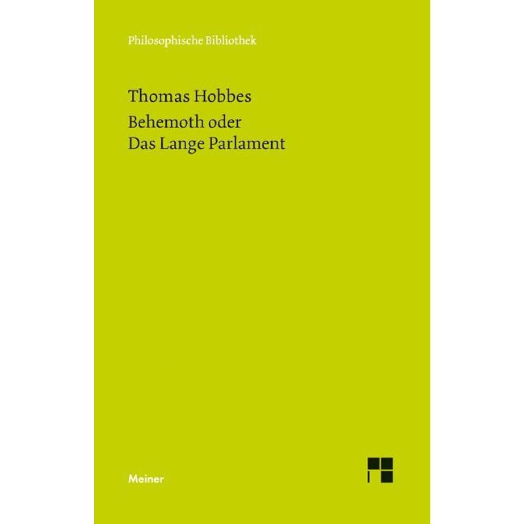 Dem biblischen Seeungeheuer Leviathan, das in Hobbes gleichnamigem Hauptwerk für die Allmacht des absolutistischen Staates steht, stellt der Autor in dieser Schrift, die aufgrund eines königlichen Druckverbots erst posthum erscheinen konnte, das Landungeheuer Behemoth aus der jüdischen Mythologie gegenüber. The Long Parliament bestand im Gegensatz zum Short Parliament, das nur 22 Tage, beginnend am 13. April 1640, tagte, offiziell von 1640 bis 1660. Dies ist die Periode, die Hobbes in seinem Behemoth behandelt. Während der Leviathan systematisch erarbeitet, welche Bedingungen für einen funktionierenden Staat erfüllt sein müssen, diskutiert der Behemoth die Gründe für den durch Aufruhr und Bürgerkrieg herbeigeführten Verfall des englischen Staates. Behemoth or the Long Parliament steht als Chiffre für Anarchie und Auflösung staatlicher Gewalt. Titel und Inhalt der Schrift scheinen das bewusst gewählte Gegenbild zum konstruktiven Staatsentwurf des Leviathan zu bilden, und in der Tat sind beide Werke in engem Zusammenhang zu lesen. Der Behemoth ist in Dialogform verfasst. Hobbes geht es darum, die Gründe zu verstehen, die zur Auflösung des englischen Gemeinwesens geführt haben, aber er verfolgt auch Fragen nach einer erfolgreichen politischen Erziehung, die seiner Ansicht nach vom Souverän geleistet werden muss. In seinem einleitenden Essay beleuchtet der Herausgeber neben der verwickelten Editionsgeschichte ausführlich den Gedankengang und den historischen und philosophischen Hintergrund dieses wichtigen Hobbes'schen Werks.