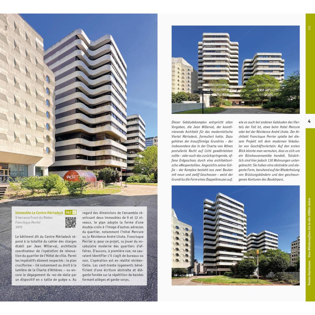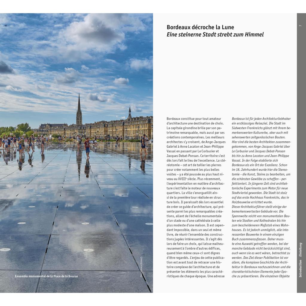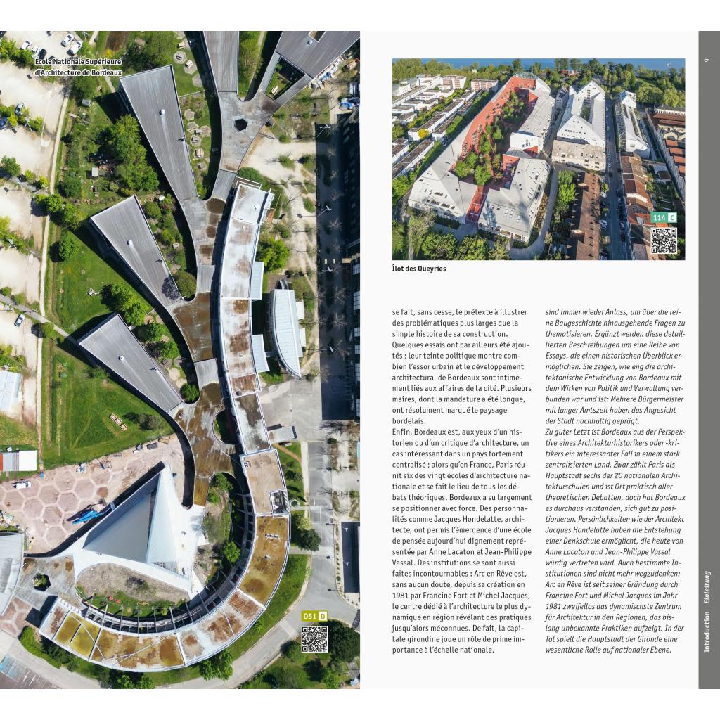Le goût de l'innovation caractérise de remarquables réalisations plaçant aujourd'hui Bordeaux sur la carte des métropoles européennes les plus dynamiques. À la faveur de grandes opérations urbaines - parmi elles, Bordeaux Euratlantique, Les Bassins à flot, Brazza -, Lacaton & Vassal, BIG, XTU, Eduardo Souto de Moura, MVRDV ou encore Herzog & de Meuron ont pu développer des projets originaux éveillant les louanges de la critique. Ce guide bilingue (français / allemand), qui compile près de 130 édifices, est l'occasion de découvrir l'actualité récente de la cité girondine, mais aussi son patrimoine.