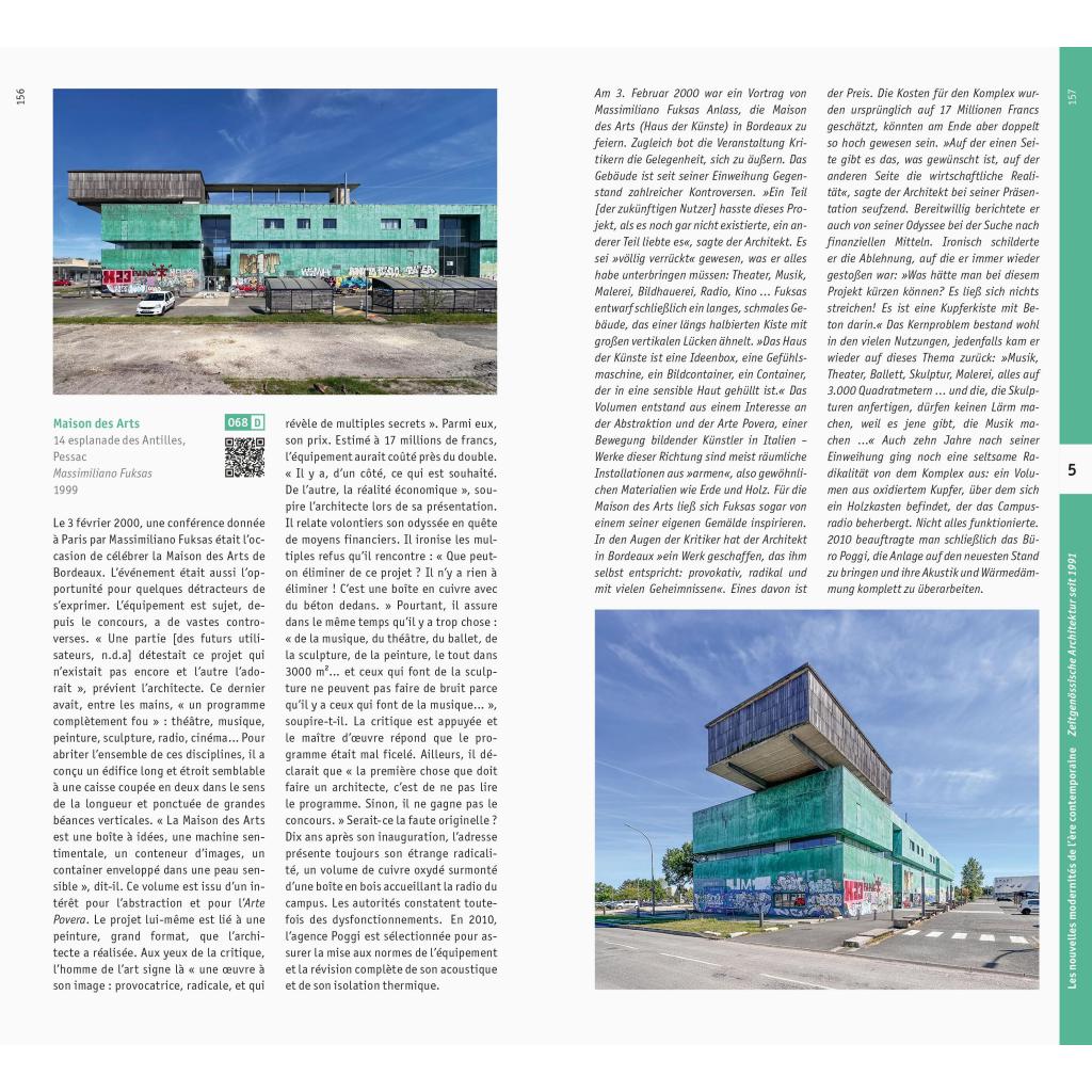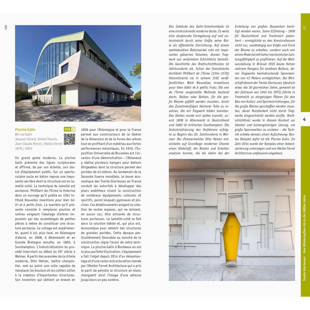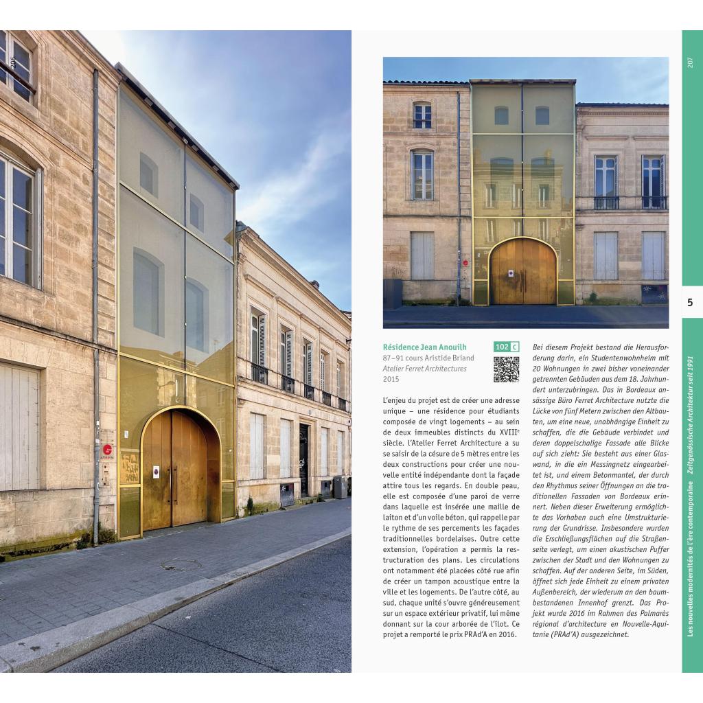 Le goût de l'innovation caractérise de remarquables réalisations plaçant aujourd'hui Bordeaux sur la carte des métropoles européennes les plus dynamiques. À la faveur de grandes opérations urbaines - parmi elles, Bordeaux Euratlantique, Les Bassins à flot, Brazza -, Lacaton & Vassal, BIG, XTU, Eduardo Souto de Moura, MVRDV ou encore Herzog & de Meuron ont pu développer des projets originaux éveillant les louanges de la critique. Ce guide bilingue (français / allemand), qui compile près de 130 édifices, est l'occasion de découvrir l'actualité récente de la cité girondine, mais aussi son patrimoine.
