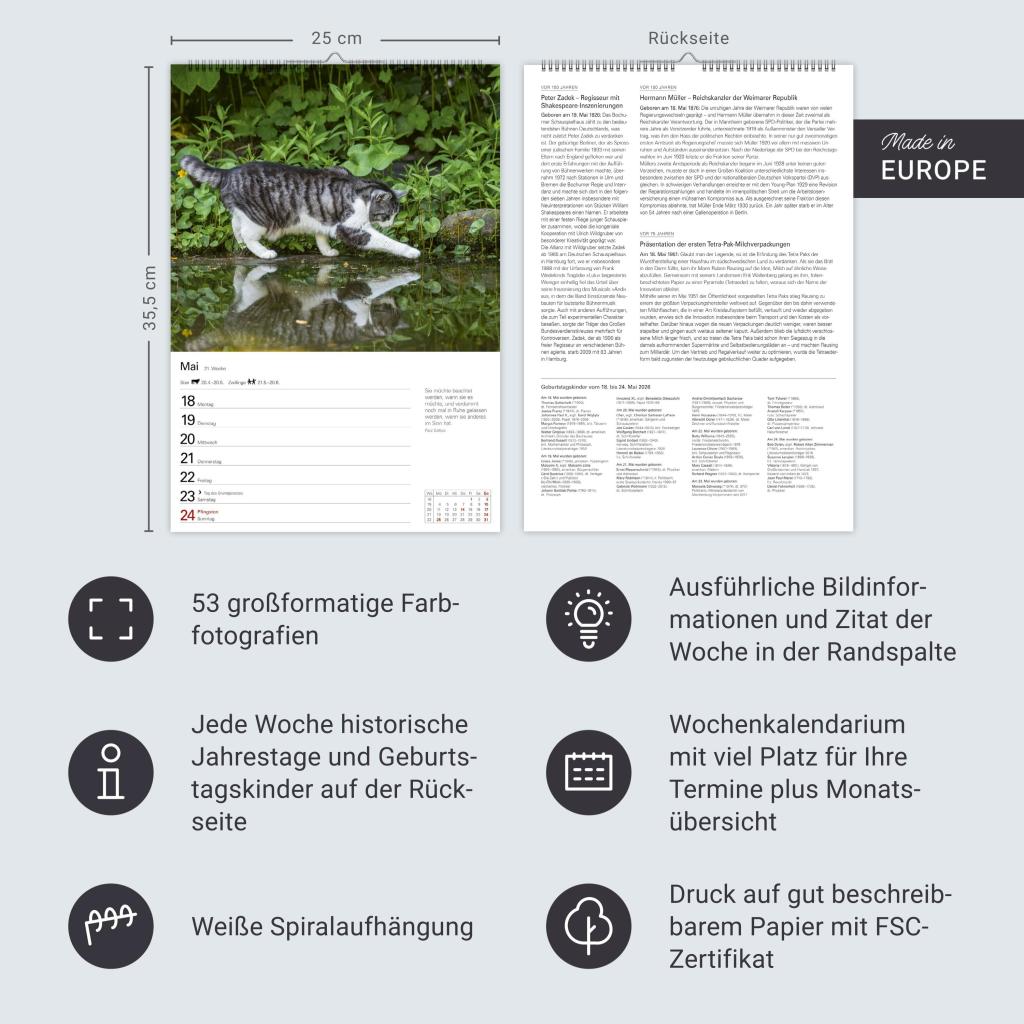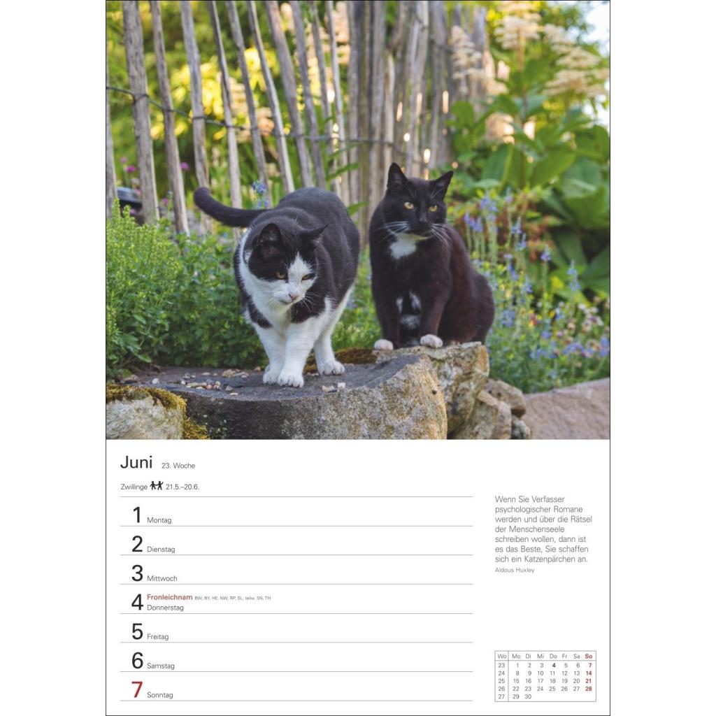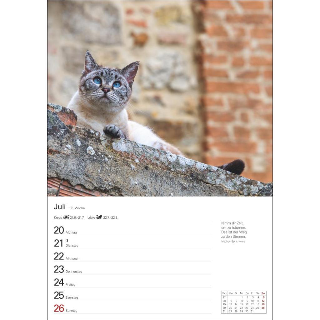 Wandkalender mit Platz für Notizen und vielen süßen Katzenfotos. Tierkalender 2026 mit praktischer Wochenansicht. Hochformat 25 x 35,5 cm