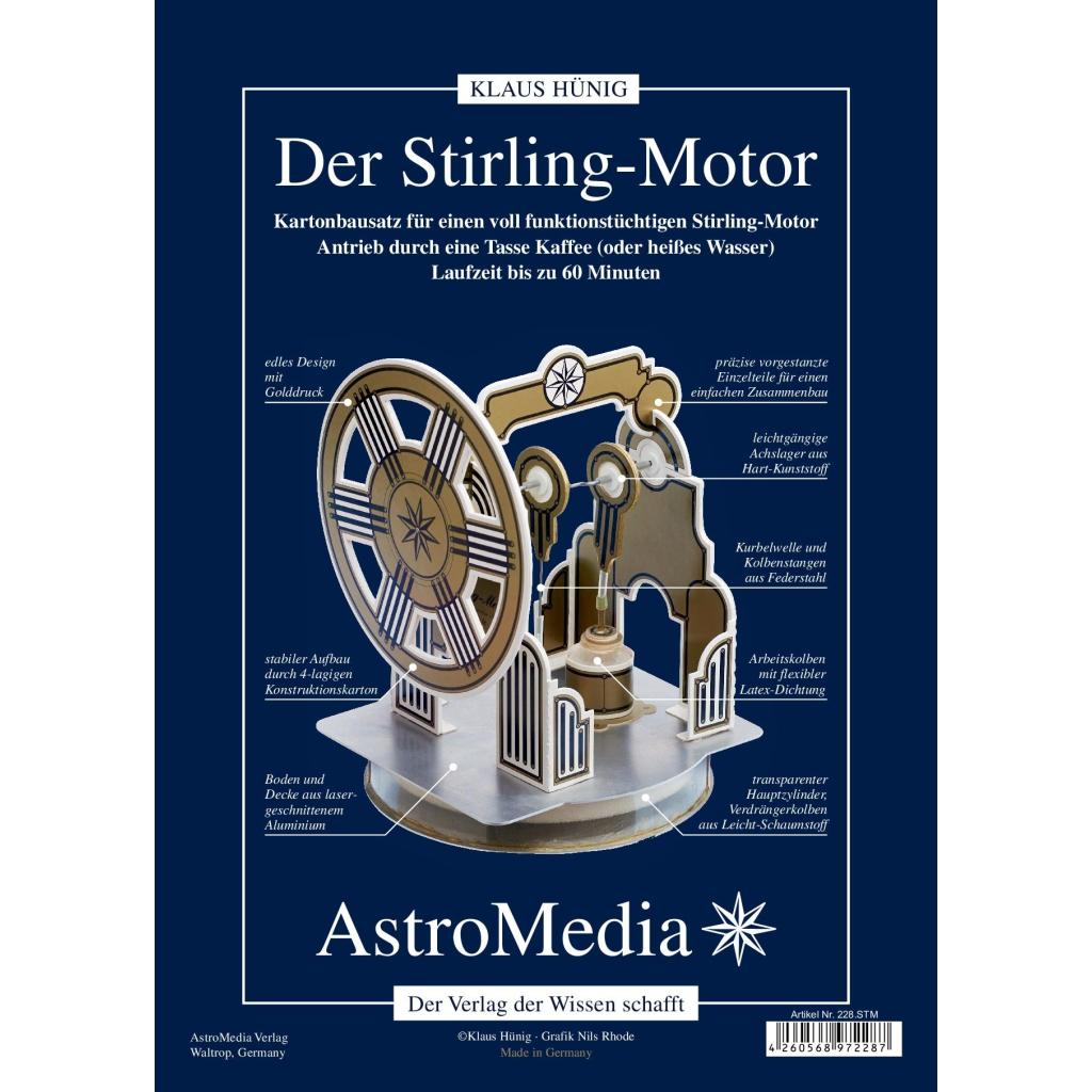 Das revolutionäre Konzept dieses Heißluftmotors wurde schon 1816 von dem schottischen Pfarrer Robert Stirling erfunden. Voll funktionstüchtig, läuft es bis 20 Minuten auf einer Tasse Kaffee. Das Prinzip ist so genial wie einfach: In einem abgedichteten, an seiner Unterseite beheizten Zylinder schiebt ein Kolben die eingeschlossene Luft zwischen der heißen und der kalten Seite hin und her. Die Luft dehnt sich dabei jedes Mal aus und zieht sich wieder zusammen, und das wird über einen Arbeitskolben und eine Kurbelwelle in eine Drehbewegung umgesetzt. Als Energiequelle dient jede beliebige Wärme- oder Kältequelle, mit der sich eine Temperaturdifferenz erzeugen lässt - vom offenen Feuer über Solarenergie bis zu sonst ungenutzter Wärme oder Kälte.