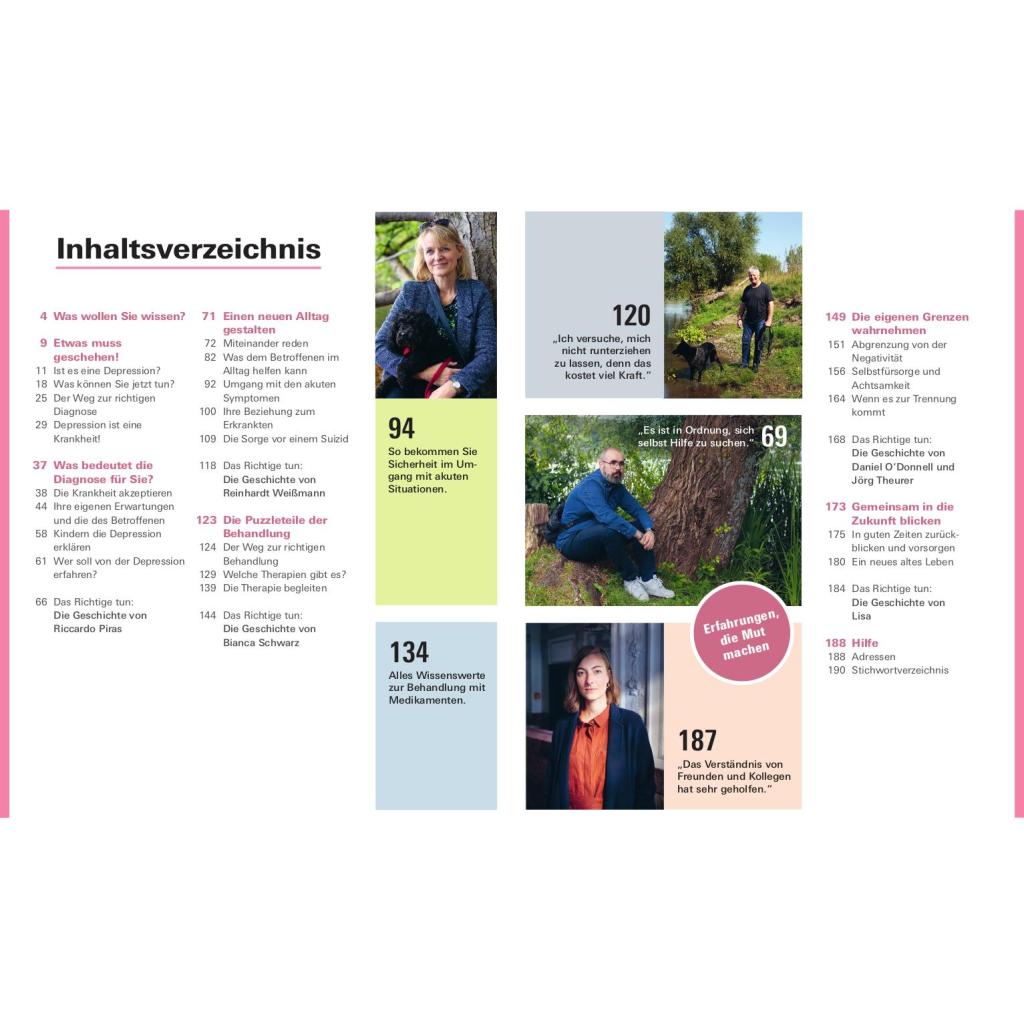 | Keyword: | Angehörige; Behandlung von Depression; Beratung; Depression; Depression erkennen; Depressionen überwinden; Familie; Freunde; Hilfsangebote für Angehörige; Kinder; Kliniksuche; Krankenhaus; Medikamente; Psychische Erkrankung; Psychotherapeuthen; Psychotherapie; Ratgeber; Selbsthilfe; Selbsthilfegruppen; Suizid; Therapien; Unterstützung; Verhaltenstherapie |