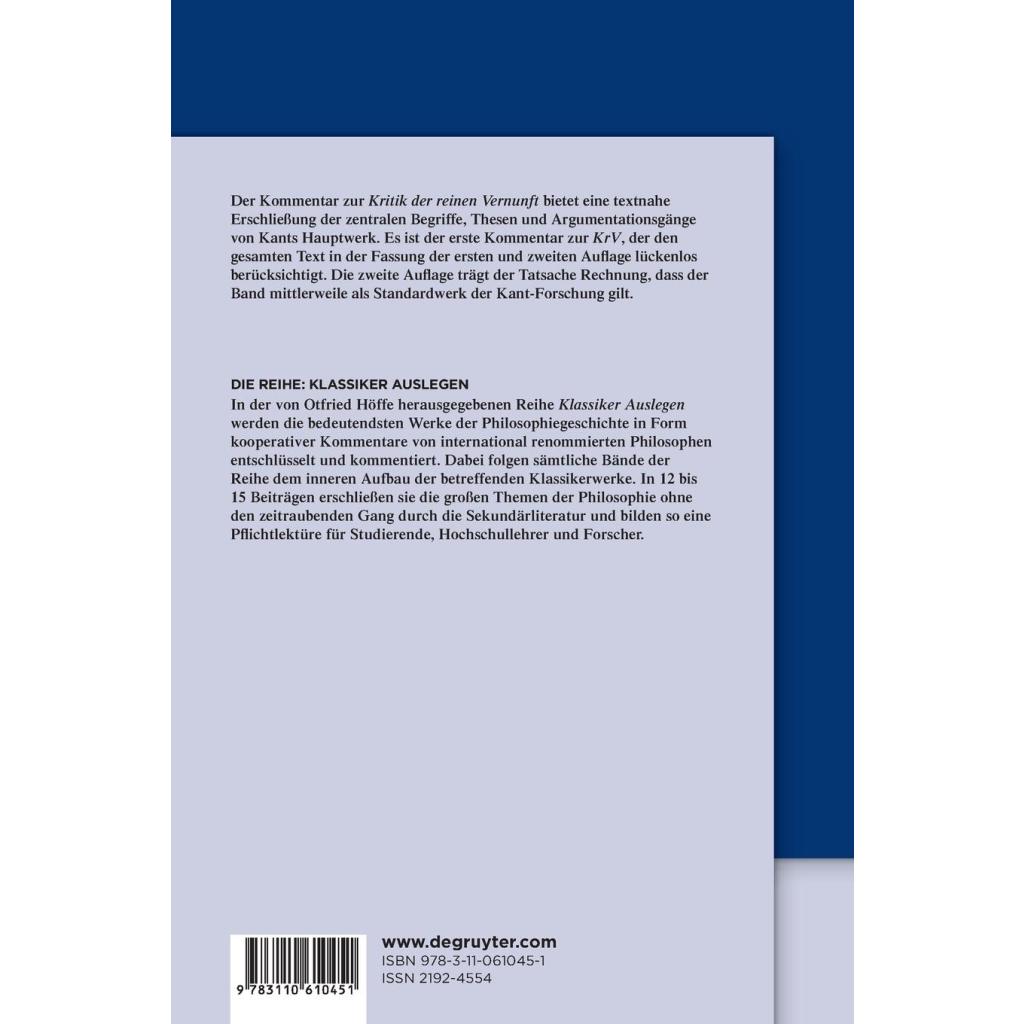 Der Kommentar zur Kritik der reinen Vernunft bietet eine textnahe Erschließung der zentralen Begriffe, Thesen und Argumentationsgänge von Kants Hauptwerk auf aktuellem Forschungsstand. Es ist der erste Kommentar zur KrV , der den gesamten Text in der Fassung der ersten und zweiten Auflage gleichmäßig und lückenlos berücksichtigt. Davon profitieren vor allem die "Transzendentale Dialektik" und die "Methodenlehre", die in früheren Gesamtkommentaren meist nicht hinreichend berücksichtigt worden sind. Die Beiträge wurden nach einheitlichen Richtlinien verfasst, wobei unterschiedliche Herangehensweisen und Interpretationsansätze zur Geltung kommen. Um dem Leser dieses Kommentars die Orientierung zu erleichtern, ist jeder Beitrag in drei bzw. vier Teile untergliedert: Der erste Teil behandelt die Stellung und Funktion des kommentierten Textabschnitts in der KrV , der zweite Teil gibt einen Überblick über Inhalt und Aufbau des Abschnitts, der dritte Teil enthält den eigentlichen Textkommentar. Wo dies sinnvoll erschien, wurden in einem vierten Teil wichtige Interpretationsfragen angesprochen. Hinweise auf weiterführende Spezialliteratur am Ende eines jeden Beitrags, eine Auswahlbibliographie zu Kant und zur Kritik der reinen Vernunft sowie ein Namen- und ein Sachregister machen den Band zu einem komfortablen Arbeitsmittel für den Benutzer. Die vorliegende zweite Auflage trägt der Tatsache Rechnung, dass der Band mittlerweile als Standardwerk der Kant-Forschung gilt. Mit Beiträgen von Henry Allison, Karl Ameriksm Reinhard Brandt, Wolfgang Carl, Konrad Cramer, Jean Ferrari Eckart Förster, Volker Gerhardt, Paul Guyer, Otfried Höffe, Hansgeorg Hoppe, Rolf-Peter Horstmann, Heiner F. Klemme, Lothar Kreimendahl, Béatrice Longuenesse, Georg Mohr, Birgit Recki, Alain Renaut, Peter Rohs, Gerhard Seel, Dieter Sturma, Bernhard Thöle, Eric Watkins, Marcus Willaschek