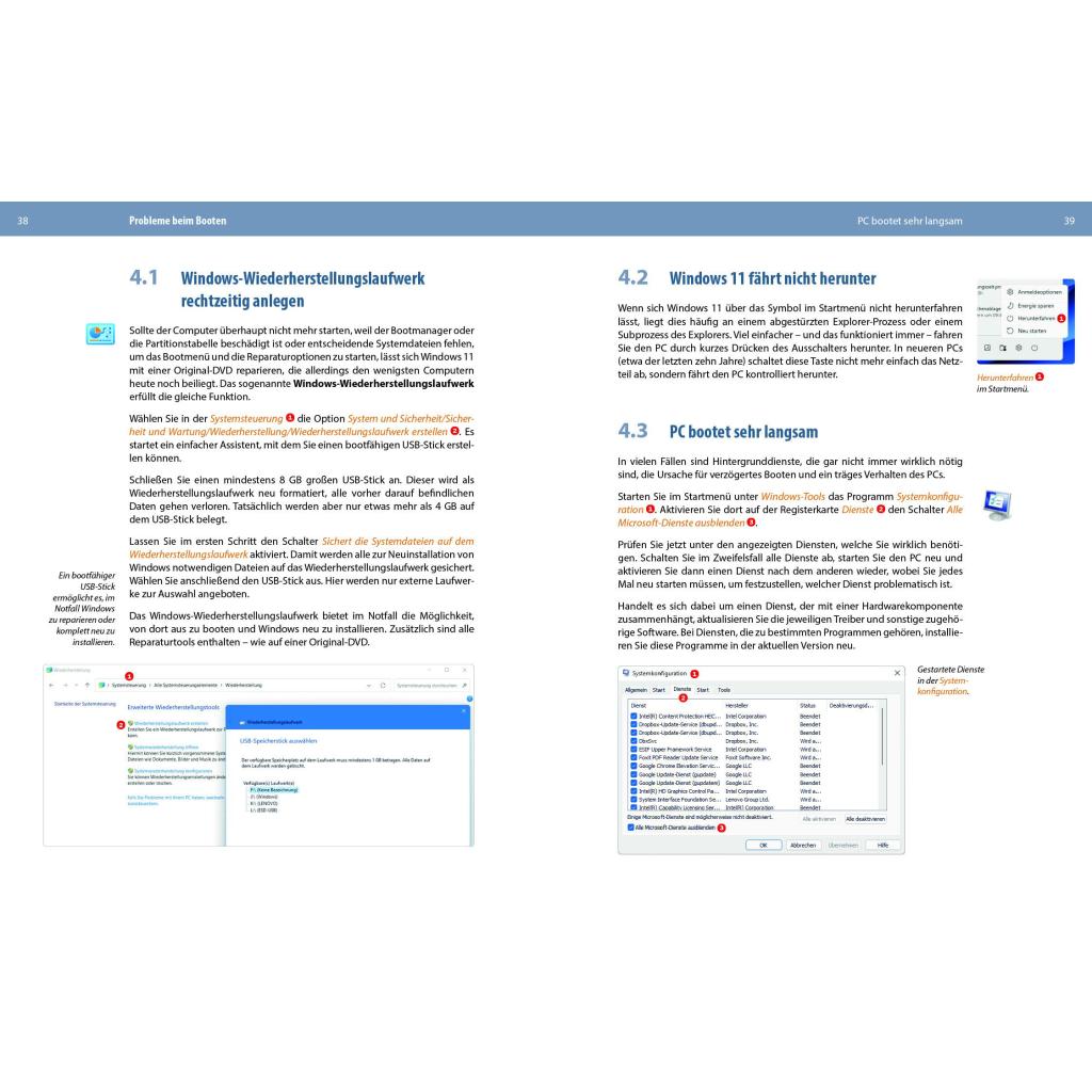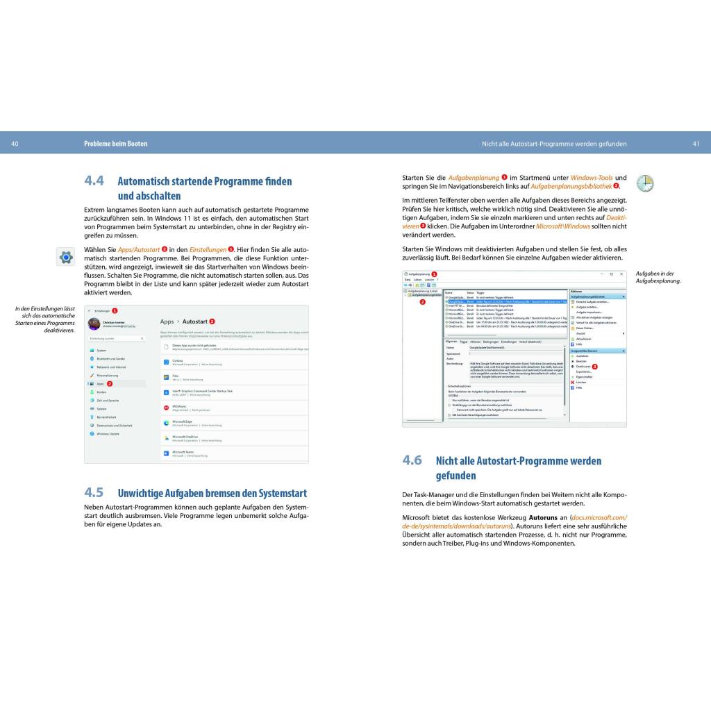 Windows 11 aktivieren, optimieren, absichern und reparieren Fehler im Betriebssystem finden, beiseitigen und umgehen Sicherheit: den Computer vor Viren und Hackern schützen Seit dem Windows 11-Update läuft Ihr PC oder Laptop nicht mehr so "rund" wie bisher und es ist einfach der Wurm drin? Ihr Windows braucht ewig zum Starten und Ihr Netzwerk ist viel langsamer als gewöhnlich? Oder haben Sie Ihr Windows-Passwort vergessen? Dann ist dieses Handbuch der ideale Helfer für Sie ! Der Experte Christian Immler kennt alle Kniffe, Schwachstellen und auch die verstecktesten Checkboxen von Windows 11. Übersichtlich gegliedert führt er Sie durch die Fallstricke des Betriebssystems und zeigt systematisch, wie Sie jedes Problem identifizieren und schnell wieder in den Griff bekommen . Freuen Sie sich auf 275 leicht verständliche Schritt-für-Schritt-Anleitungen sowie auf praktische Tipps und Tricks zur Selbsthilfe, mit denen Sie Windows 11 entmüllen, optimieren und reparieren. Selbst Änderungen an der Registry werden kein Hindernis mehr darstellen: Denn die wichtigsten .reg-Dateien zur Verbesserung Ihres Systems stehen zum kostenlosen Download bereit. Aus dem Inhalt: Alle Neuerungen von Windows 11 Vertraute Komponenten aus Windows 10 wiederfinden und nachinstallieren Windows 11 reparieren und optimieren Gewohnte Desktop-Optik wiederherstellen Systembremsen erkennen Einstellungen optimieren und richtige Konfigurationen vornehmen Probleme beim Booten beheben Hardware und Treiber korrekt einrichten Netzwerkfunktionen optimieren und Fallstricke umgehen Festplattenfehler beheben und Daten retten Sicherheitssperren und Passwörter richtig verwenden