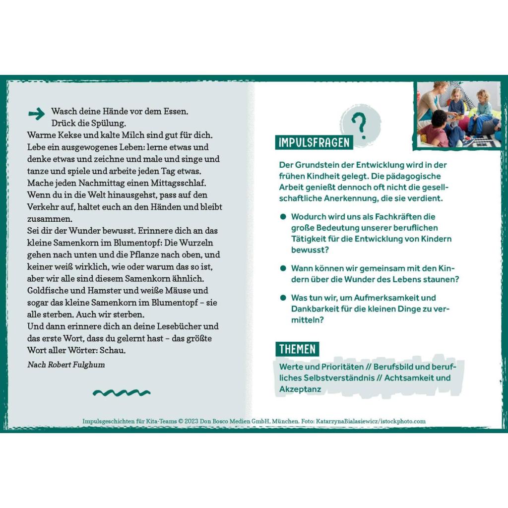 | Titel der Reihe: | Mein Beruf - meine Kita. Don Bosco Bildkarten für Ausbildung, Teamentwicklung & Qualitätsmanagement## |