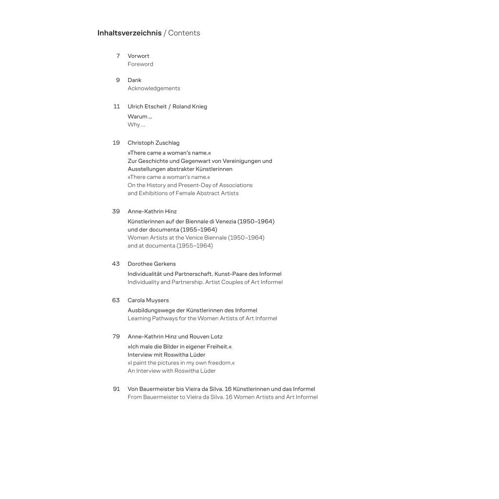 Zweisprachige Ausgabe (deutsch/englisch) / Bilingual edition (English/German) Die informelle Kunst entwickelte sich vom Beginn der 1950er- bis zu den frühen 1960er-Jahren zu der vorherrschenden Kunstrichtung in Europa. Der kunsthistorische Blick auf diese von klassischen Form- und Gestaltungsprinzipien losgelöste Kunstrichtung fokussierte sich bislang meist auf ihre männlichen Vertreter. Der Band wirft nun einen neuen Blick auf die Kunst des Informel und würdigt hochkarätige Positionen von 16 Künstlerinnen. Neben bekannten Namen wie Maria Lassnig, Brigitte Meier-Denninghoff, Judit Reigl und Maria Helena Vieira da Silva werden lang vergessene Künstlerinnen wiederentdeckt. Anhand von kunstsoziologischen Fragen zu Netzwerken, Ausstellungsbeteiligungen und zur Rezeption wird zudem den Mechanismen des Kunstbetriebs nachgespürt. Blick ins Buch Ausstellungen "Vergessene künstlerische Positionen der 50er und 60er Jahre" Neue Galerie Kassel: 11.10.2024 - 26.1.2025 Kunsthalle Schweinfurt: 20.2.2025 - 22.6.2025 Emil Schumacher Museum, Hagen: 31.08.2025 - 11.01.2026