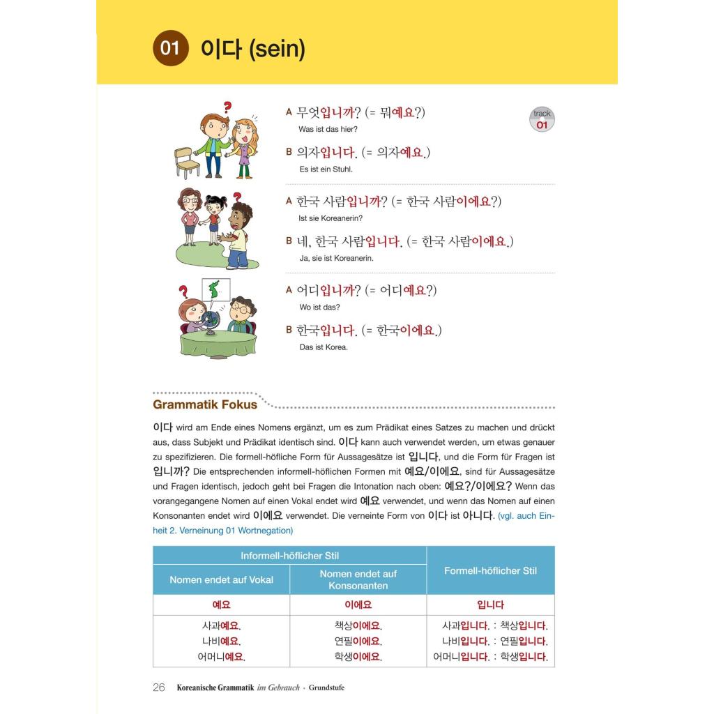 ¿ Beinhaltet die ganze Grammatik für TOPIK Level 1 und Level 2! ¿ Auf einem Blick die Unterschiede ähnlicher grammatischer Konstruktionen lernen! ¿ Übungen zu zahlreichen Ausdrücken, die in der gleichen Situation verwendet werden! ¿ Grammatik leicht gemacht durch reale Alltagsdialoge! ¿ Die Hörbeispiele können über QR Codes auf den jeweiligen Buchseiten aufgerufen oder komplett heruntergeladen werden. Dieses Buch präsentiert leicht verständlich und kompakt die koreanische Grammatik für Koreanisch Lernende. Die Autoren haben echte Dialoge und anschauliche Beispiele eingebaut, um das Lernen interessant zu gestalten. Es ist ideal für Anfänger und als Nachschlagewerk für Koreanisch-Lehrerinnen und -Lehrer. Klare Erklärungen und Übungen helfen beim sicheren Umgang mit der Sprache. Tauche ein in die faszinierende Welt der koreanischen Grammatik!
