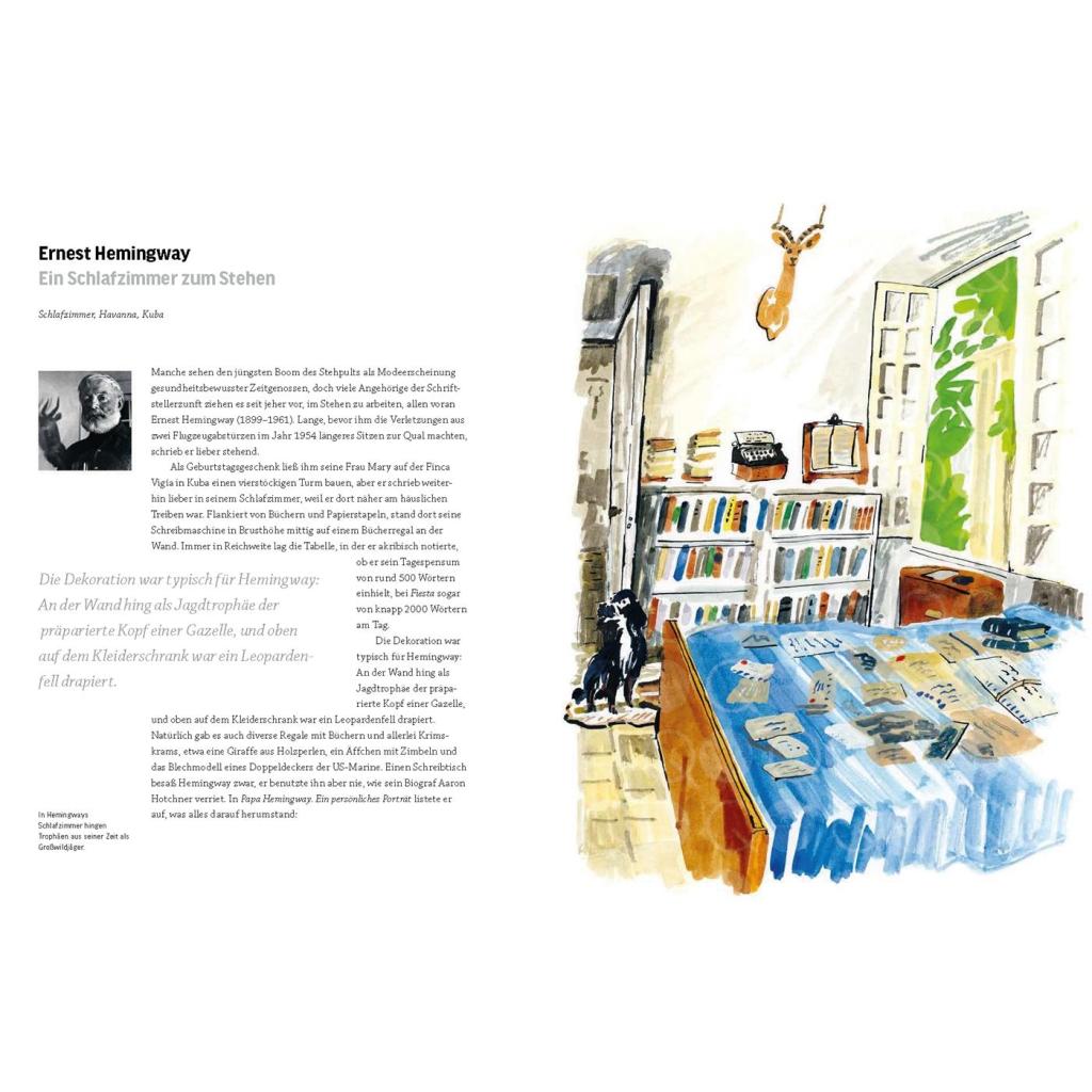 Alex Johnson unternimmt eine unterhaltsame Reise durch die Weltliteratur und erzählt von Gewohnheiten, Ritualen und Marotten unserer Lieblingsautor:innen. Wir erhalten Zugang zu ihren ganz privaten Lebensräumen, blicken ihnen beim Schreiben über die Schulter und erfahren, wie sie ihre besten Werke geschaffen haben. Mit Fotos und Illustrationen. Zuhause bei unseren Lieblingsschriftsteller:innen Mit welcher Tinte schrieb Jane Austen? Warum beginnt Isabel Allende alle Romane am 8. Januar? Was kostete Ray Bradburys Schreibmaschine? Alex Johnson unternimmt in 'Schreibwelten' eine unterhaltsame Reise durch die Weltliteratur und erzählt von den kleinen Geheimnissen und merkwürdigen Gewohnheiten unserer Lieblingsschriftsteller:innen - von Astrid Lindgrens Geheimschrift über Victor Hugos Ofen bis zu Mark Twains Gartenlaube. Wir erhalten Zugang zu ihren ganz privaten Lebensräumen, blicken ihnen beim Schreiben über die Schulter und erfahren, wie sie ihre besten Werke geschaffen haben. Ein beeindruckender Trip durch 500 Jahre Weltliteratur Liebevoll und farbenfroh illustrierter Band, der zum Weiterlesen verführt Ein wahrer Schatz voller Anekdoten und Merkwürdigkeiten Stephen King, Ernest Hemingway, Sylvia Plath u. v. a. hautnah Die schönsten Marotten und Rituale unserer liebsten Autor:innen Alex Johnson hat 50 herausragende Autor:innen ausgewählt. Wir treffen sie in Cafés und Garagen, auf Dachböden und einsamen Inseln. Agatha Christie hatte die besten Ideen in der Badewanne. Nabokov erfand 'Lolita' im Auto. Einige legen Wert auf spitze Bleistifte und blaues Papier, andere kritzeln auf einfach alles. Ein liebevoll und farbenfroh illustrierter Band, der zum Weiterlesen verführt.