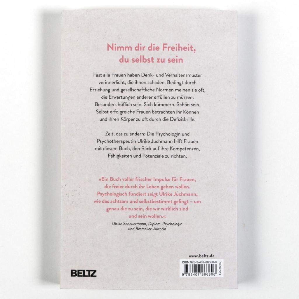 Fast alle Frauen haben Denk- und Verhaltensmuster verinnerlicht, die ihnen schaden. Bedingt durch Erziehung und gesellschaftliche Normen meinen sie oft, die Erwartungen anderer erfüllen zu müssen: Besonders höflich sein. Sich kümmern. Schön sein. Selbst erfolgreiche Frauen knabbern an ihrem Selbstwert und betrachten ihr Können und ihren Körper durch die Defizitbrille. Doch wie können Frauen den Blick auf ihre Kompetenzen, ihre Fähigkeiten und ihr Potenzial richten - auf das, was sie wollen? Die Psychologin und Psychotherapeutin Ulrike Juchmann zeigt in ihrem Buch die besten Tools aus 25 Jahren Arbeit mit Frauen. Ihre besondere Methodenkombination aus Achtsamkeit, Arbeit an Glaubenssätzen und Körperübungen hilft dabei, hinderliche Erwartungen abzustreifen. »Ein Buch voller frischer Impulse für Frauen, die freier durch ihr Leben gehen wollen. Psychologisch fundiert zeigt Ulrike Juchmann, wie das achtsam und selbstbestimmt gelingt - um genau die zu sein, die wir wirklich sind und sein wollen.« Ulrike Scheuermann, Diplom-Psychologin und Bestseller-Autorin »Ulrike Juchmann bietet einen großen Schatz an Methoden, um endlich von verinnerlichten Denk- und Verhaltensmustern frei zu werden. Eine unverzichtbare Lektüre für alle Frauen, die den Blick auf das richten möchten, was sie wollen und können.« Marie Mannschatz, Autorin und Meditationslehrerin