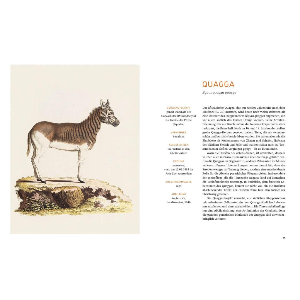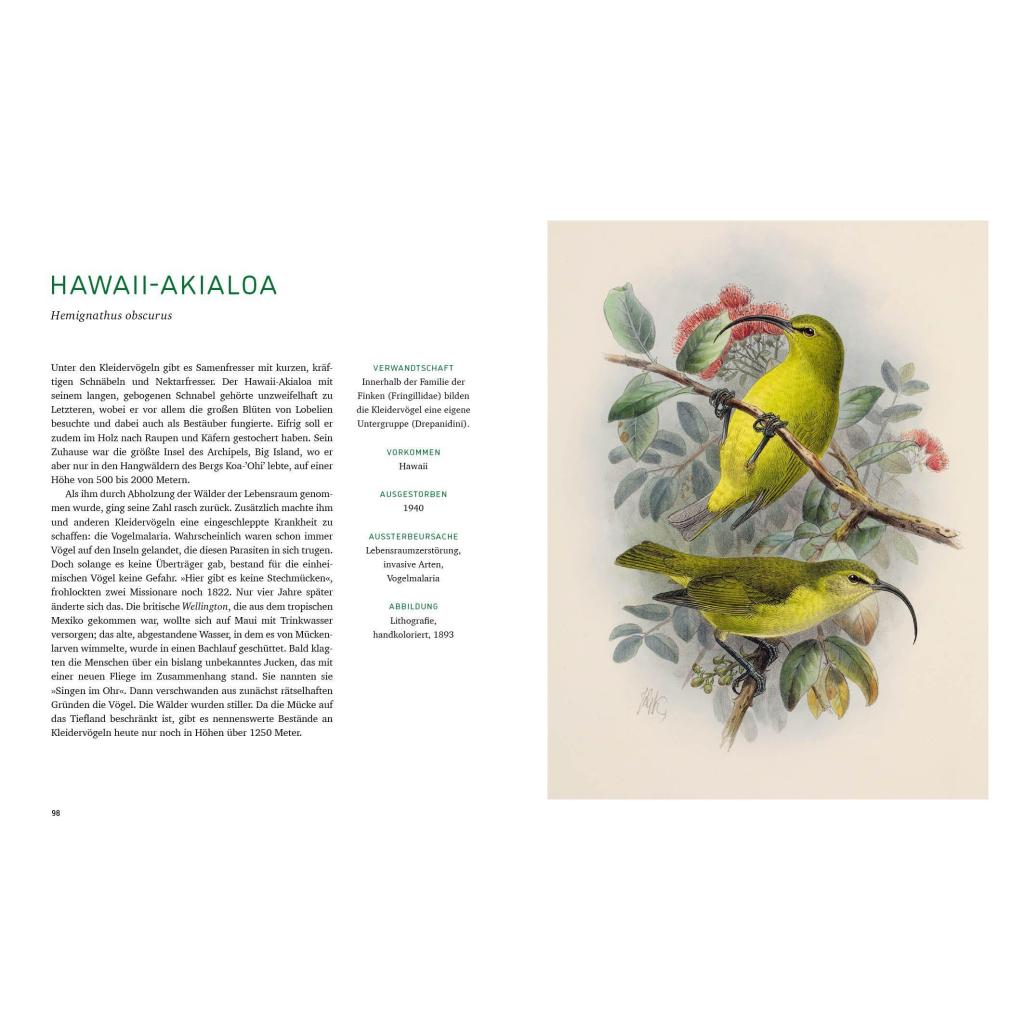 Benjamin, Martha und Lonesome George teilen dasselbe Schicksal: Sie waren sogenannte »Endlinge«, die Letzten ihrer Art. Der Beutelwolf Benjamin starb 1936 in einem Zoo auf Tasmanien. Mit Martha endete die Linie der Wandertauben. Und der einsame George, Symbolfigur der Galapagosinseln, besiegelte die Geschichte der Pinto-Riesenschildkröten. Seit dem Tod dieser letzten Vertreter ist ihre Spezies für immer und unwiederbringlich verloren. Anhand von historischen Illustrationen herausragender Maler wie John James Audubon oder John Gould erinnert dieses Buch an die Schönheit von fünfzig ausgestorbenen Tierarten und erzählt Bemerkenswertes zu ihrer Biologie und Naturgeschichte, ebenso wie Anekdoten und Kurioses, speziell über ihre Beziehung zum Menschen. Eindrücklich führt es uns auf diese Weise die Verluste vor Augen, die die Tierwelt durch unseren zerstörerischen Umgang mit der Natur bereits erlitten hat, bewahrt heutzutage unbekannte Spezies wie Riesenalk oder Quagga vor dem Vergessen und ist zugleich Ansporn, weiteres Artensterben zu verhindern.