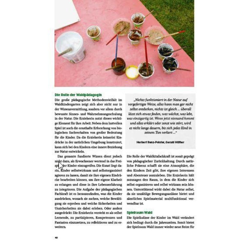 | Keyword: | Kinder; Kindergarten; Kindergartenkinder; Kita-Kinder; Konzept; Natur; Naturpädagogik; Outdoorpädagogik; Praxisbericht; Praxisberichte; Praxisbuch; Pädagogisch; Wald; Waldkindergarten; Waldtage; Waldwochen; praktisch umsetzen |