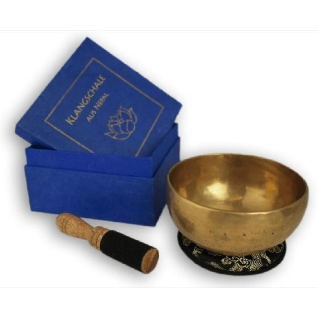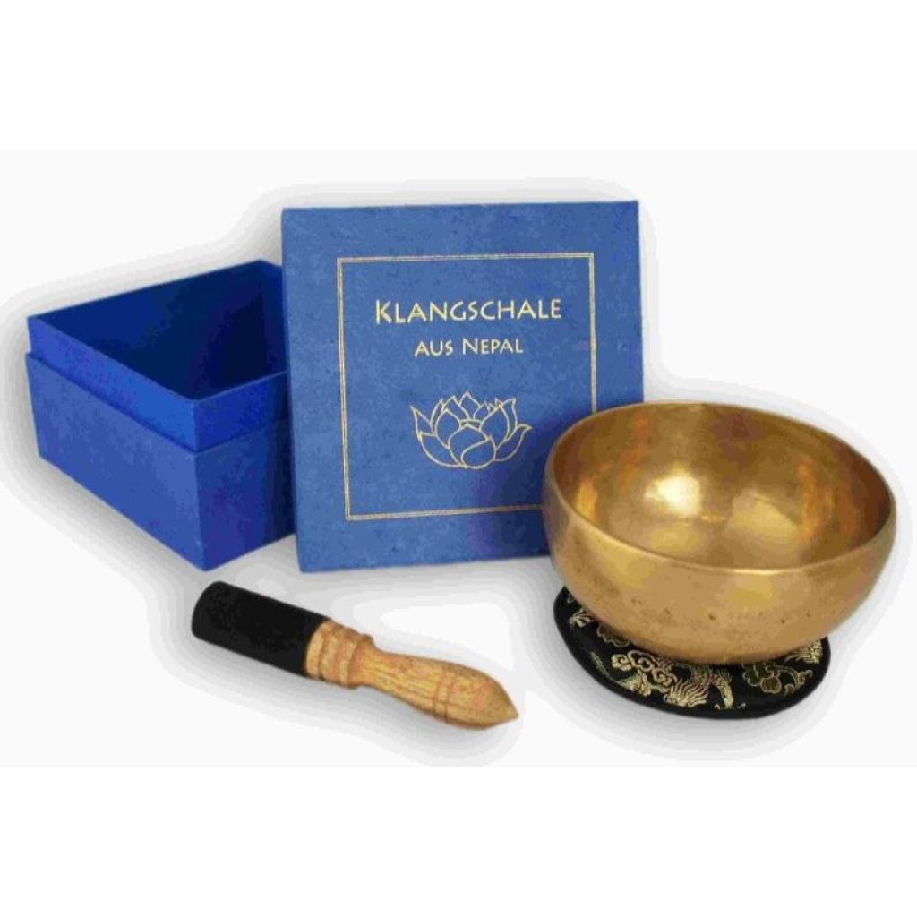 Traditionell gefertigte Klangschale in Geschenkbox mit Lotussymbol aus Nepal