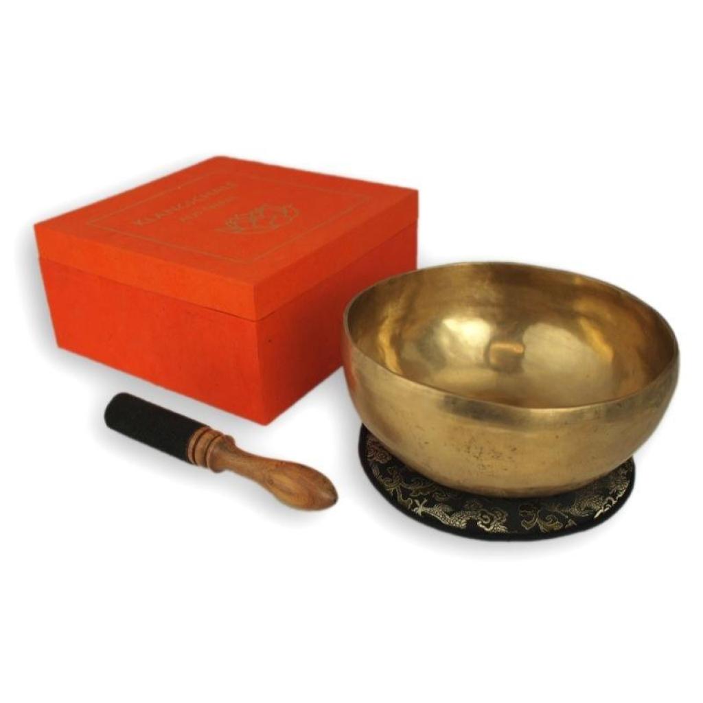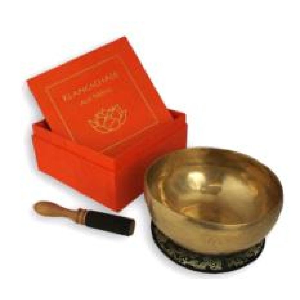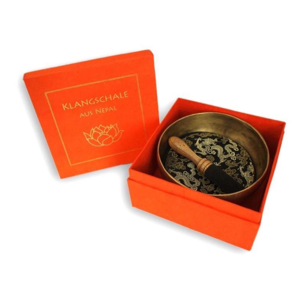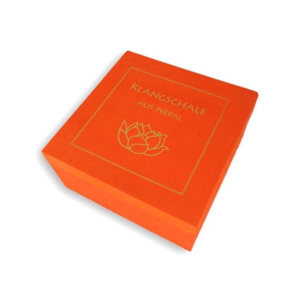 Traditionell gefertigte Klangschale in Geschenkbox mit Lotussymbol aus Nepal