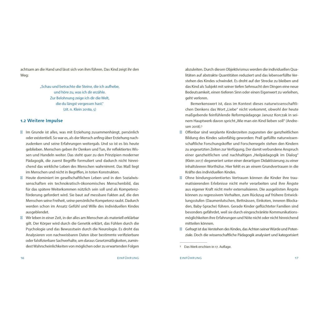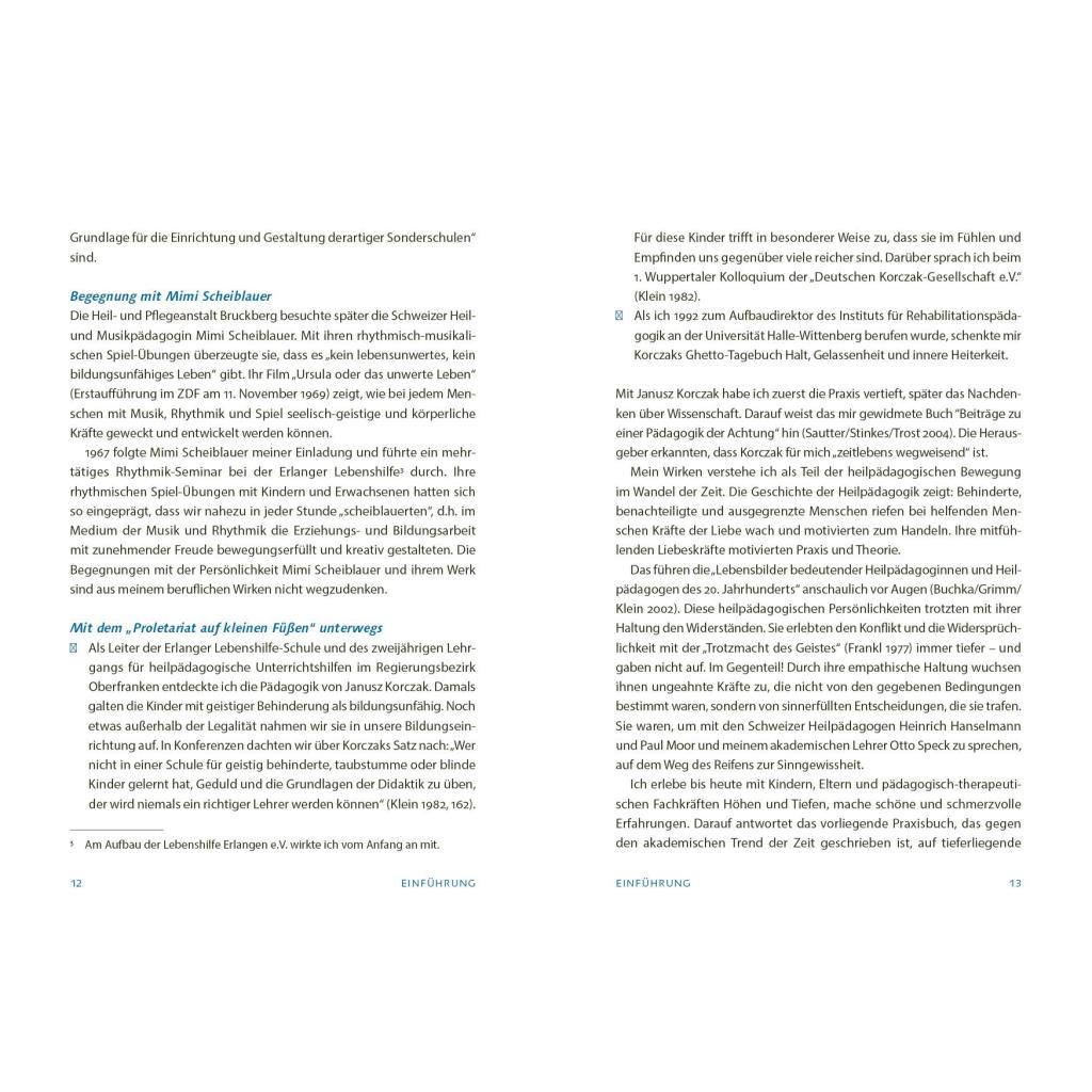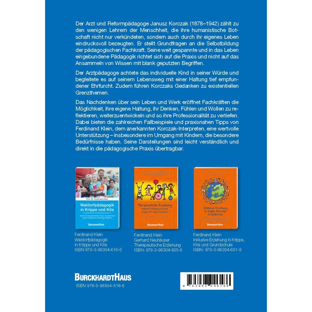 Der Arzt und Reformpädagoge Janusz Korczak (1878-1942) zählt zu den wenigen Lehrern der Menschheit, die ihre humanistische Botschaft nicht nur verkündeten, sondern auch durch ihr eigenes Leben eindrucksvoll bezeugten. Er stellt Grundfragen an die Selbstbildung der pädagogischen Fachkraft. Seine weit gespannte und in das Leben eingebundene Pädagogik richtet sich auf die Praxis und nicht auf das Ansammeln von Wissen mit blank geputzten Begriffen. Der Arztpädagoge achtete das individuelle Kind in seiner Würde und begleitete es auf seinem Lebensweg mit einer Haltung tief empfundener Ehrfurcht. Zudem führen Korczaks Gedanken zu existentiellen Grenzthemen. Das Nachdenken über sein Leben und Werk eröffnet Fachkräften die Möglichkeit, ihre eigene Haltung, ihr Denken, Fühlen und Wollen zu reflektieren, weiterzuentwickeln und so ihre Professionalität zu vertiefen. Dabei bieten die zahlreichen Fallbeispiele und praxisnahen Tipps von Ferdinand Klein, dem anerkannten Korczak-Interpreten, eine wertvolle Unterstützung - insbesondere im Umgang mit Kindern, die besondere Bedürfnisse haben. Seine Darstellungen sind leicht verständlich und direkt in die pädagogische Praxis übertragbar.