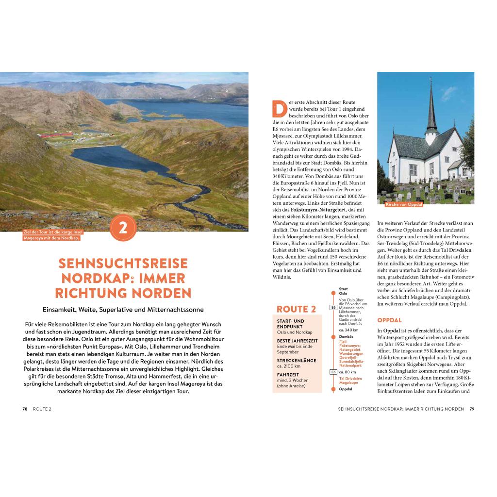 Traumziel Norwegen dieser Reiseführer stellt sechs der schönsten Routen vor alle bestens geeignet für Wohnmobile. Detailliert beschrieben führen die Touren, teilweise abseits ausgetretener Touristenpfade, über reizvolle Strecken zu landschaftlichen und kulturellen Attraktionen. Auf individuellen Touren führt unser Wohnmobilexperte Sie durch Region. Die Detailkarte zu jeder Tour hilft bei der Orientierung, Streckenleisten und Straßenatlas im Anhang zeigen detailliert die Route zum Nachfahren. Stell- und Campingplätze sind am Ende jeder Tour ausführlich und mit GPS-Koordinaten beschrieben und im Straßenatlas verzeichnet.