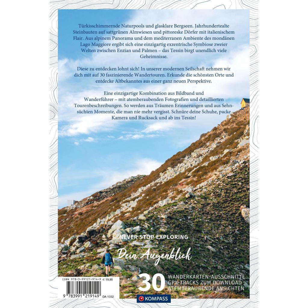 | Keyword: | 1332; Aktivurlaub; Bergsteigen; Dein Augenblick; Fotografie; Outdoorführer; Schweiz; Tessin; Wanderführer |