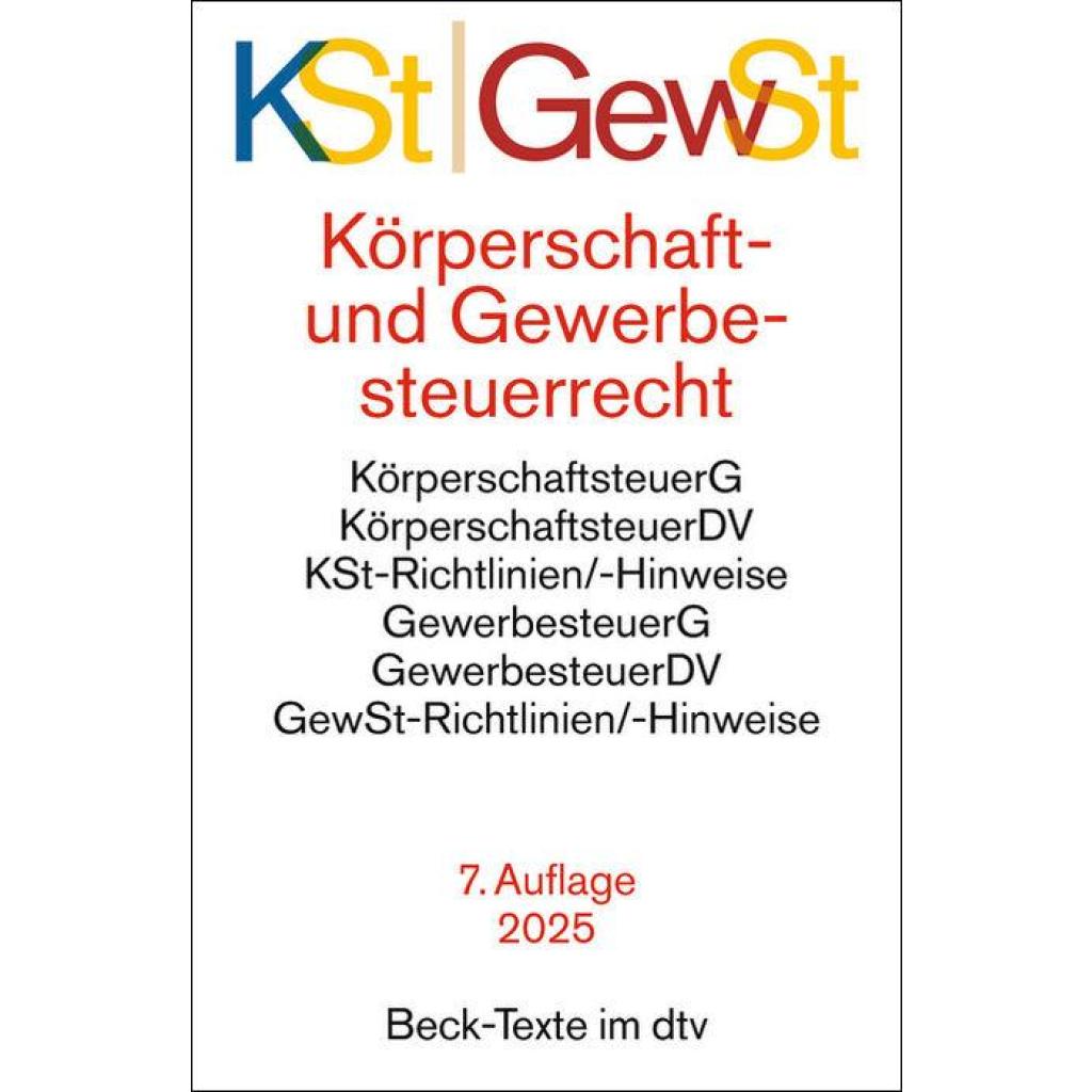 Körperschaftsteuergesetz, Körperschaftsteuer-Durchführungsverordnung, Körperschaftsteuer-Richtlinien und Körperschaftsteuer-Hinweise, Gewerbesteuergesetz, Gewerbesteuer-Durchführungsverordnung, Gewerbesteuer-Richtlinien und Gewerbesteuer-Hinweise. Textausgabe mit ausführlichem Sachregister. Rechtsstand: 1. Januar 2025