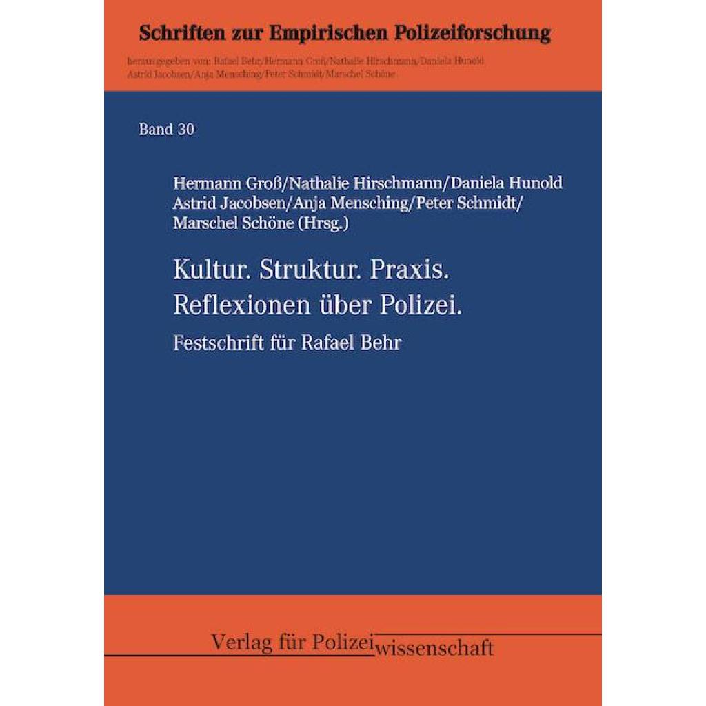 Hermann Groß/Nathalie Hirschmann/Daniela Hunold/Astrid Jacobsen/ Anja Mensching/Peter Schmidt/Marschel Schöne Rafael Behr Anja Mensching Von einem, der auszog, als Polizeiforscher auf die Polizei und als Polizist auf die Polizeiforschung zu schauen Udo Behrendes Fragen an einen früheren Kollegen - Ein Interview mit Rafael Behr - Teil 1 Josef Pfaffenlehner Das Berufsbild der Polizei im Spannungsfeld zu Ethik und Bildung Werner Schiewek Was macht die 'Guten' gut? - Rafael Behrs Anregungen für die Polizeiethik Clemens Lorei/Kerstin Kocab Gut Ding will (W-)Eile haben Marschel Schöne Von Bullen und Sozialsofties. Das Verhältnis von Polizei und Sozialer Arbeit Nathalie Hirschmann Graphic Novel Eva Groß/Joachim Häfele Polizei und Wissenschaft im ambivalenten Verhältnis Antonio Vera Von der ethnografischen Feldforschung zur explorativen Faktorenanalyse - Methodologische Entwicklungen bei der Erforschung der Organisationskultur der Polizei Peter Schmidt/Hermann Groß Hochschule und Polizeibehörde unter einem Dach: Gelungenes Bildungskonstrukt oder Fehlkonstruktion? Bernhard Frevel Funktion und Wirkung von Kultur(tätigkeit) in der Polizei - Eine 'Leerstelle' in Rafael Behrs Cop-Culture-Forschung Thomas Gundlach Zum Verhältnis von Kriminologie und Kriminalistik oder wer braucht hier eigentlich wen? Udo Behrendes Fragen an einen früheren Kollegen - Ein Interview mit Rafael Behr - Teil 2 Nils Zurawski "Der will doch nur ins Fernsehen" - Gedanken zur Figur des engagierten Wissenschaftlers und den Abwehrreflexen einer Organisation Christoph Kopke/Oussama Laabich Polizeiliches Erfahrungswissen oder vorurteilsgerichtete Ermittlungspraxis? - Zur Debatte um Racial Profiling Thomas Feltes/Wolfgang Mallach Risiken und Nebenwirkungen im Polizeialltag: Der Lagebedingte Erstickungstod Daniela Klimke "Nur tuntig darfst Du nicht sein" - LGBTIQ* und Polizei Hartmut Aden Die Kontrolle der internationalen Polizeizusammenarbeit und des Streetlevel-Policing - Zwei getrennte Welten Astrid Jacobsen Lagebild Behr Daniela Hunold Rafael Behr: Klarheit und Erkenntnis Verzeichnis der Autorinnen und Autoren
