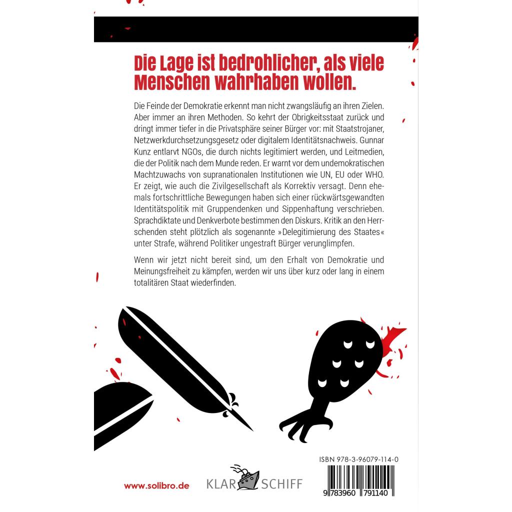 Die Lage ist bedrohlicher, als viele Menschen wahrhaben wollen. Die Feinde der Demokratie erkennt man nicht zwangsläufig an ihren Zielen. Aber immer an ihren Methoden. So kehrt der Obrigkeitsstaat zurück und dringt immer tiefer in die Privatsphäre seiner Bürger vor: mit Staatstrojaner, Netzwerkdurchsetzungsgesetz oder digitalem Identitätsnachweis. Gunnar Kunz entlarvt NGOs, die durch nichts legitimiert werden, und Leitmedien, die der Politik nach dem Munde reden. Er warnt vor dem undemokratischen Machtzuwachs von supranationalen Institutionen wie UN, EU oder WHO. Er zeigt, wie auch die Zivilgesellschaft als Korrektiv versagt. Denn ehemals fortschrittliche Bewegungen haben sich einer rückwärtsgewandten Identitätspolitik mit Gruppendenken und Sippenhaftung verschrieben. Sprachdiktate und Denkverbote bestimmen den Diskurs. Kritik an den Herrschenden steht plötzlich als sogenannte 'Delegitimierung des Staates' unter Strafe, während Politiker ungestraft Bürger verunglimpfen. Wenn wir jetzt nicht bereit sind, um den Erhalt von Demokratie und Meinungsfreiheit zu kämpfen, werden wir uns über kurz oder lang in einem totalitären Staat wiederfinden. Dieses Buch geht mit einer Fülle von Belegen und nachprüfbaren Quellenangaben den antidemokratischen Tendenzen auf den Grund und hält ein leidenschaftliches Plädoyer für eine Rückkehr zu Meinungsvielfalt, sachlichen Debatten und Respekt vor "Andersdenkenden".