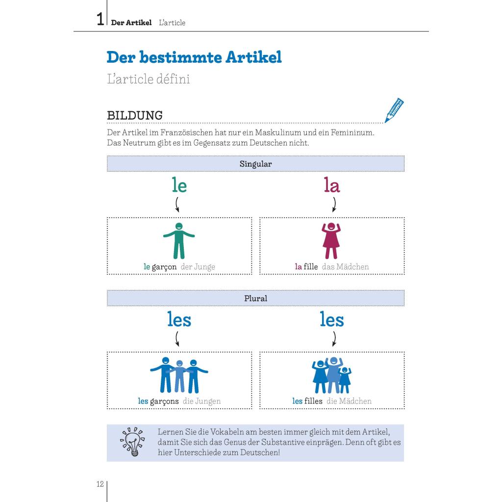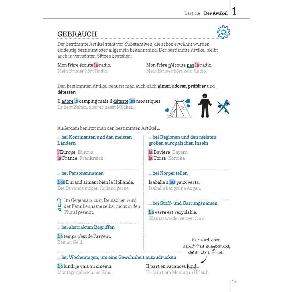 Mit Bildern Französische Grammatik lernen – verblüffend einfach! Französische Grammatik mal ganz anders: Mit AHA-Effekt zum echten Durchblick! Alle wichtigen Grammatikthemen leicht verständlich erklärt Das moderne, klar strukturierte Layout sorgt für einen guten Überblick Anschauliche Infografiken und ein durchdachtes Farbleitsystem erleichtern das Verständnis Einprägsame Illustrationen und visuelle Eselsbrücken bleiben schnell im Gedächtnis Abwechslungsreich und überraschend neu – da macht Dranbleiben Spaß Intuitiv und motivierend – Grammatik lernen leicht gemacht!