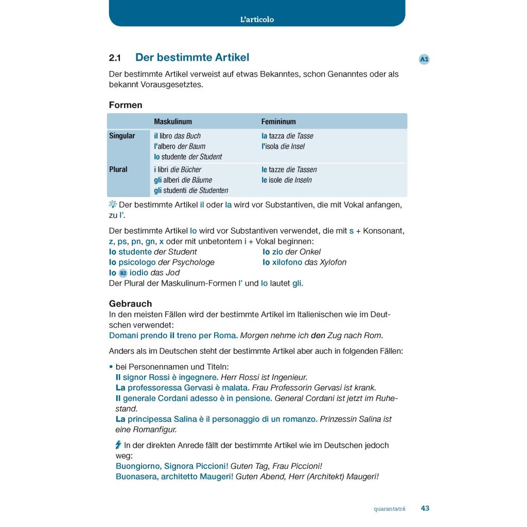 Das Standardwerk zum Nachschlagen und Trainieren Ausführliche italienische Grammatik mit zahlreichen Beispielen und Erklärungen Alle italienischen Wörter und Beispielsätze übersetzt Mit Einstufungstests sowie Abschlusstests nach jedem Kapitel Sie lernen alle Grammatik-Themen der Sprachniveaus von A1 bis C2 Ideal für Sekundarstufe II und Studium