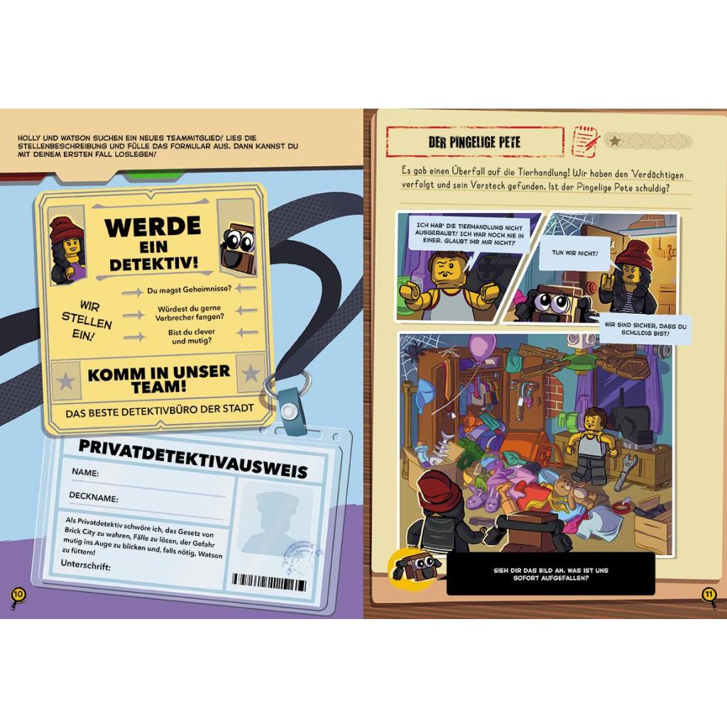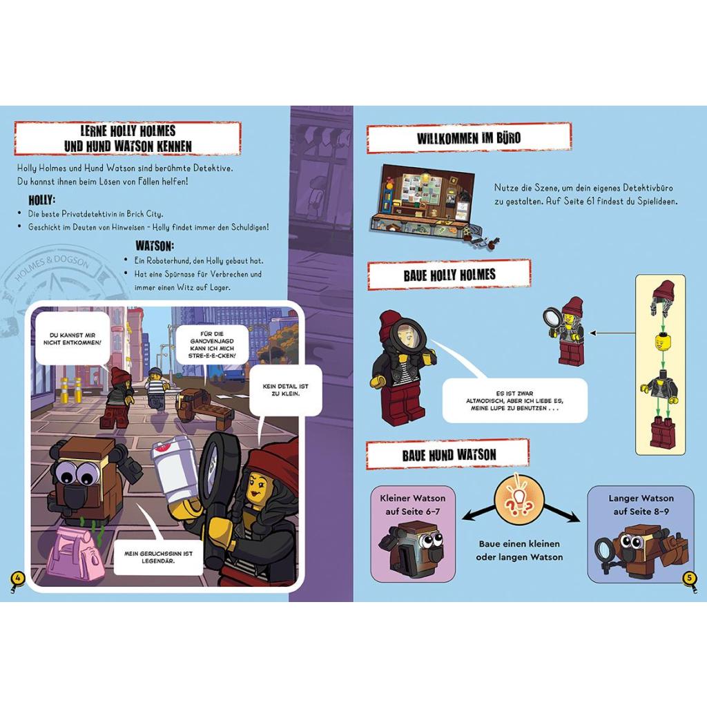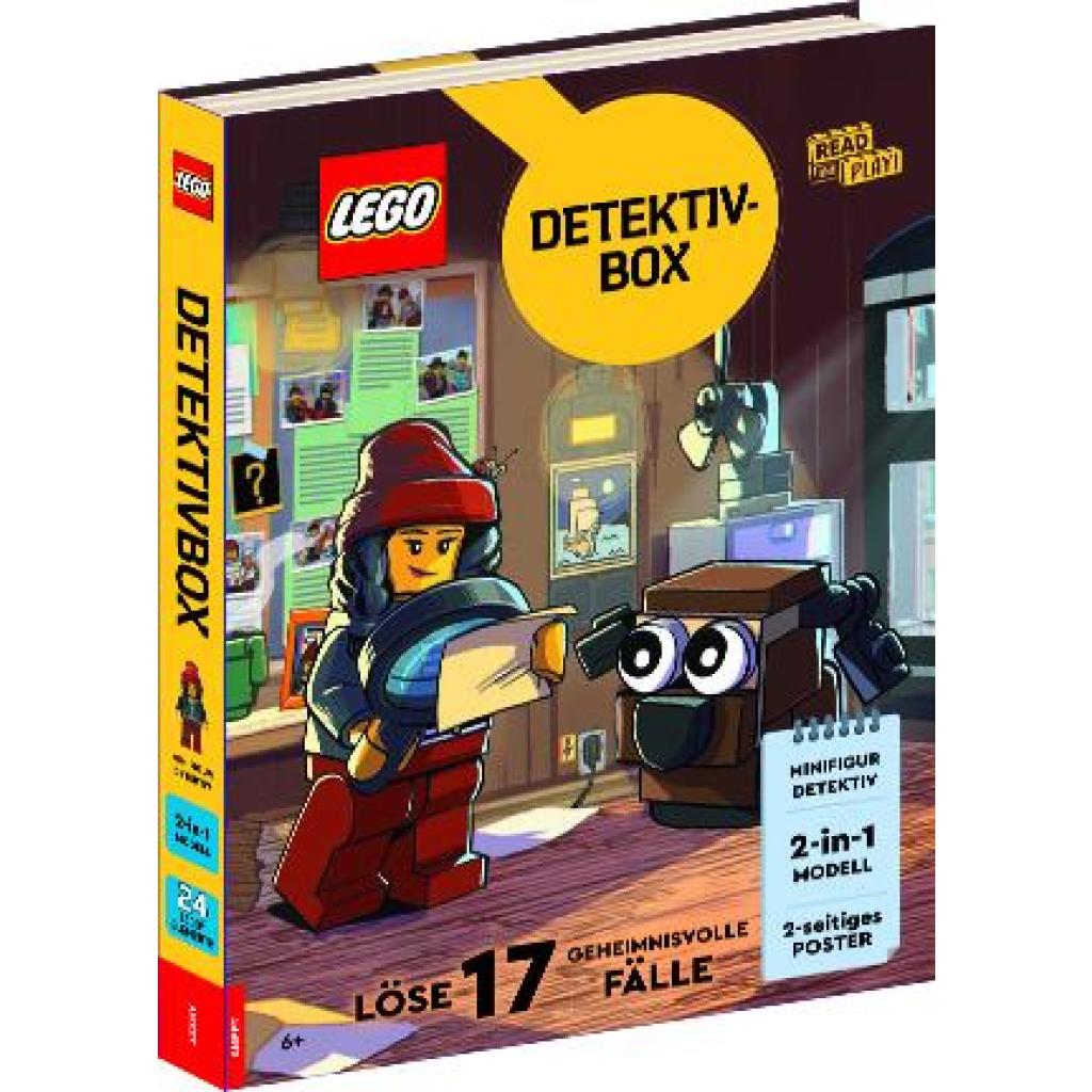 Teste deine detektivischen Fähigkeiten - Box mit LEGO® Minifigur und -set, Detektivhinweisen, Postkarten, und vielem mehr In diesem neuen Produktformat geht es um eine Detektivin und ihren Hund, der Verbrechen erschnüffelt und - mit Hilfe des Lesers - Rätsel aus der LEGO® Welt lösen muss. Es gibt verschiedene Hinweise, die in den Illustrationen und den Beweisumschlägen verborgen sind, um die Rätsel zu lösen oder die Diebe zu identifizieren, damit jeder Fall entspannt gelöst werden kann. Ein Buch mit fünf Geschichten und zwölf zusätzlichen Bonus-Rätseln entführt dich in die Welt der Detektive. Das Poster sowie Zusatzhinweise in separaten Umschlägen ergänzen die Beweislage, so dass jeder Fall schnell aufgedeckt werden kann. Die hochwertige Box ist ein Highlight für alle LEGO® Fans ab 6 Jahren, die gerne bauen, spielen und als Detektiv unterwegs sein wollen. LEGO, the LEGO logo, the Minifigure and the Brick and Knob configurations are trademarks of the LEGO Group. (c)2024 The LEGO Group.