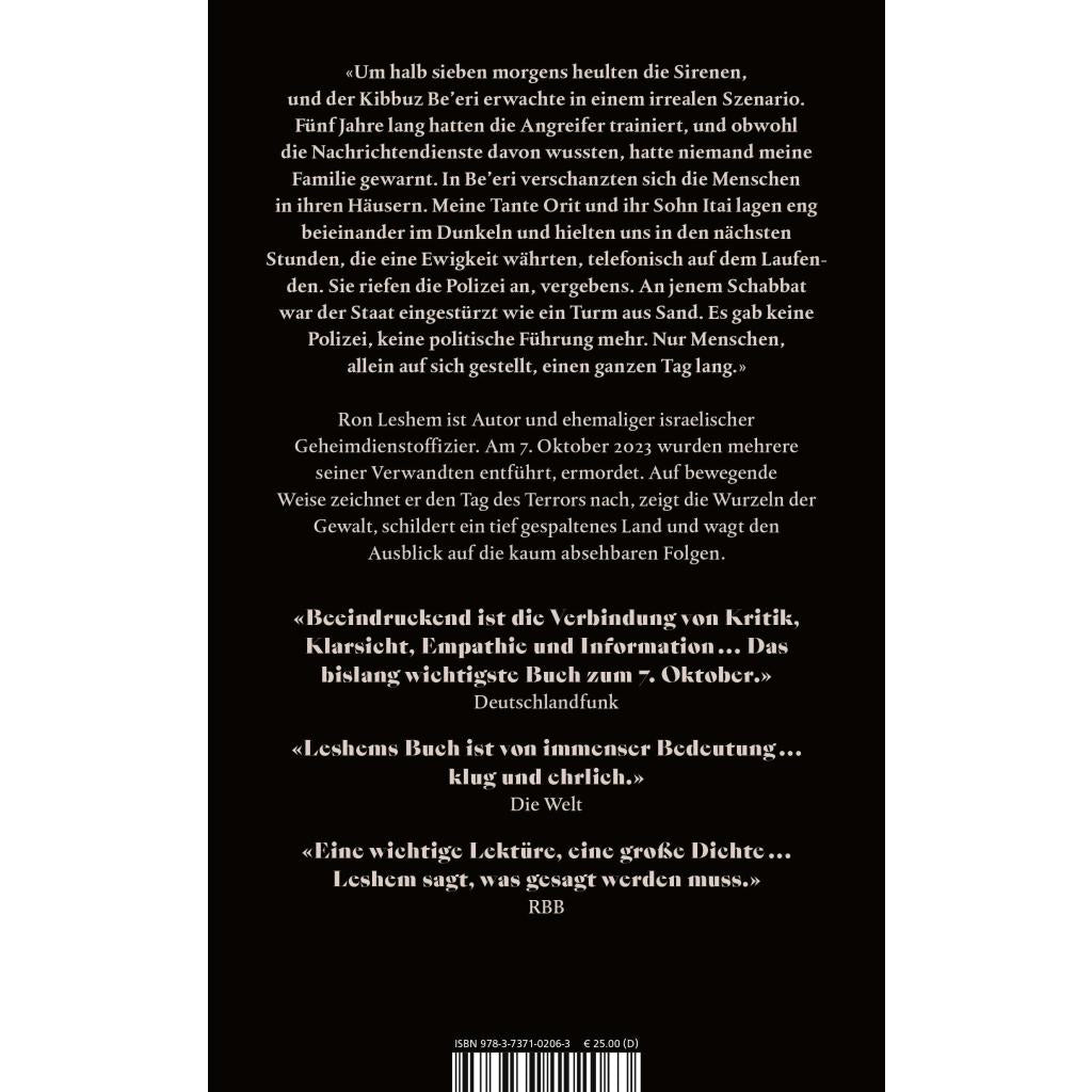 | Keyword: | 7. Oktober 2023; 7.10.23; 9/11; Antisemitismus; Erfahrungsbericht Krieg; Gaza; Gazastreifen; Geiseln; Geschichte Naher Osten; Hamas; Intifada; Israel; Israelische Armee; Jom-Kippur-Krieg; Juden; Jüdische Siedlungen; Krieg; Krieg Israel Palästina verstehen; Krieg im Gazastreifen; Moslems; Nahostkonflikt; Netanjahu; Palästina; Palästinakrieg; Sachbuch Israel; Sechstagekrieg 1967; Terror; Terroranschlag auf Israel 2023; Ursachen Nahostkonflikt; Westjordanland; jüdisches Leben; politisches Sachbuch |