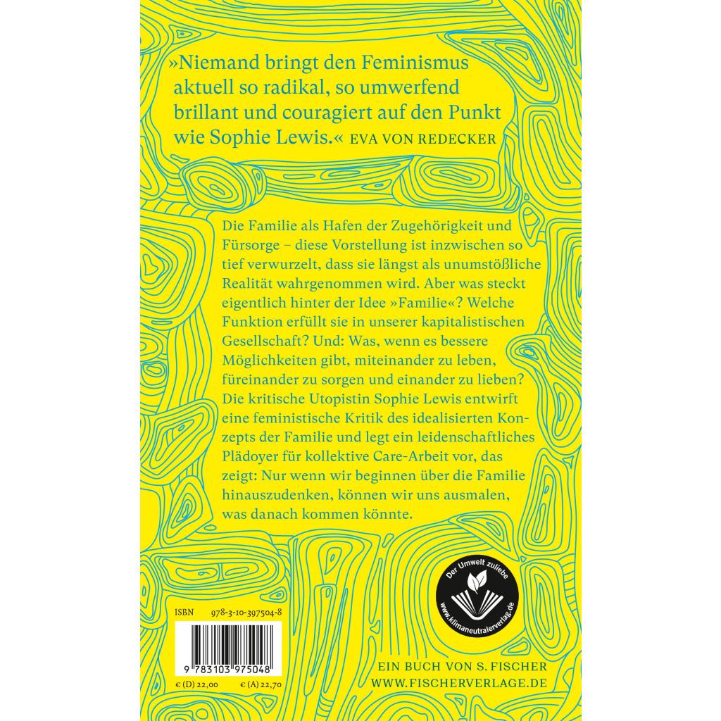 | Keyword: | Abolitionismus; Care-Arbeit; Donna Haraway; Gender; Gesellschaftskritik; Kapitalismuskritik; Kernfamilie; Kinship; Kommunismus; LGBTQ+; Leihmutterschaft; Manifest; Patriarchat; Pflege; Polyamorie; Postkapitalismus; Sorgearbeit; Sozialforschung; Sozialphilosophie; Systemkritik; Utopie; Verwandtschaftsbegriff; Wahlfamilie; elternlos; family abolition; queer; utopische Theorie |