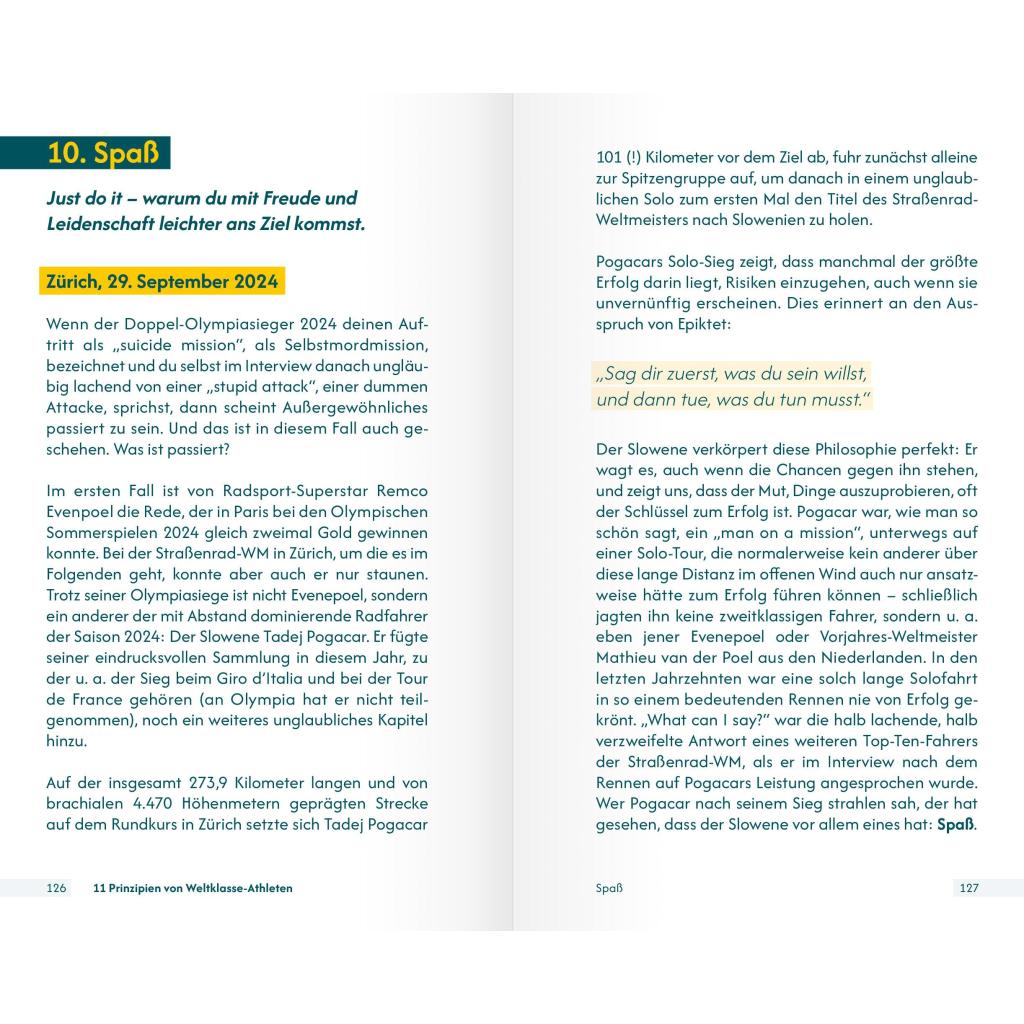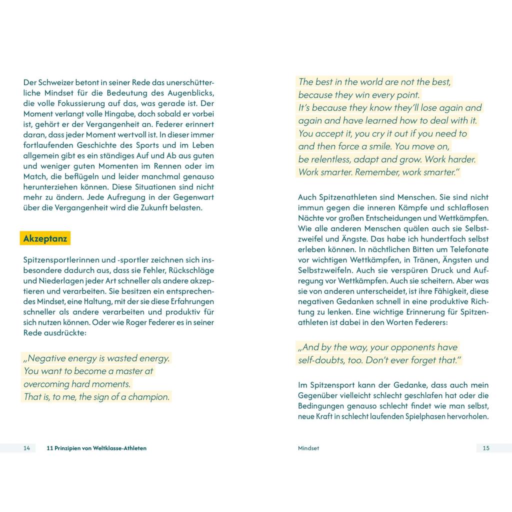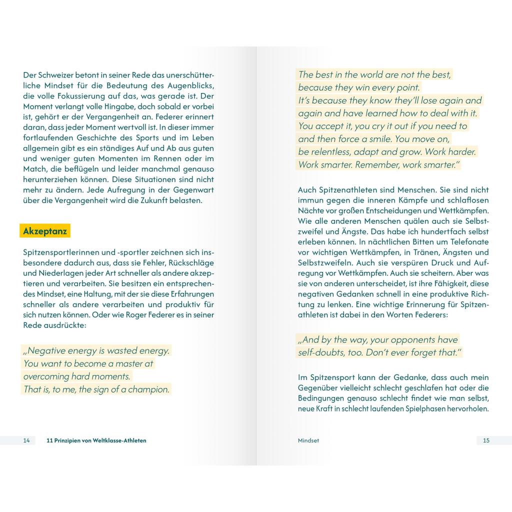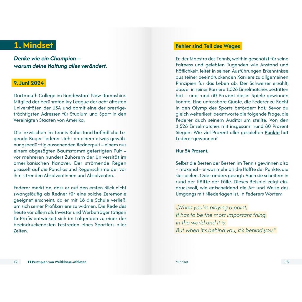 | Keyword: | Athlet; Ausbilder; Bestleistung; Coach; Erfolg; Erfolgskonzept; Laufen; Mental; Mentaltrainer; Methoden; Persönlichkeit; Praxisbuch; Praxisnah; Prinzipien; Psychologie; Radsport; Schwimmen; Sport; Sportpsychologe; Sportpsychologie; Strategie; Stärke; Tennis; Tipps; Tischtennis; Trainer; Training; Weltklasse; Wettkampf; Übungen |