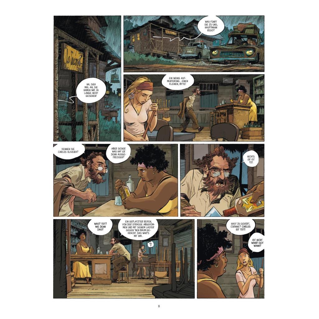 Tief im Dschungel Max, der gerade seine Mutter beerdigt hat, taucht in seine eigene Vergangenheit ein, in seine Kindheit, die er in Brasilien verbrachte. Auf der Suche nach seinem Vater gerät er ein Netz von Gewalt, Prostitution und dem Gesetzlossigkeit. Auf der Flucht vor zwielichtigen Gestalten verschlägt es ihn immer tiefer in den Dschungel und zu alten Geheimnissen hin. An seiner Seite ist die stumme Baia, die allein sein Überleben sichern kann. Der neue Thriller von Loisel (Das Nest) und Pont (Jenseits der Zeit)