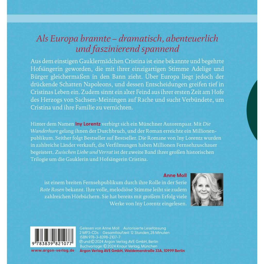 | Keyword: | Adelsfehde; Die Wanderhure; Gaukler; Herzogtum; Hofsängerin; Internationaler Frauentag; Iny Lorentz Romane; Napoleon; Rache; Schausteller-Dynastie; Spiegel Bestseller 2024; absolutes Gehör; historische Abenteuerromane; historische Frauenromane; historische Romane 19. Jahrhundert; napoleonische Kriege; starke Frauen |
