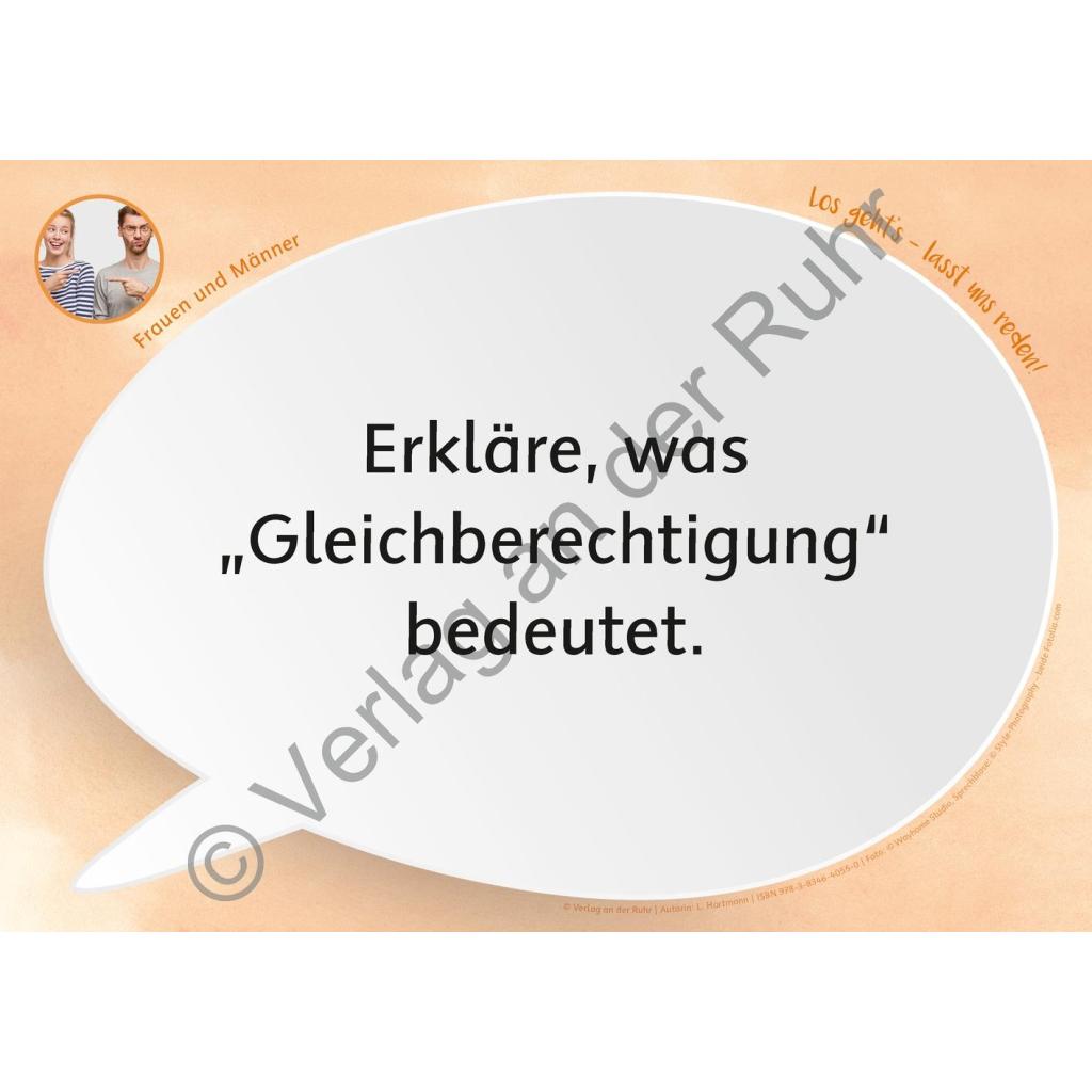 | Keyword: | Lehrer; Schüler; Schule; Unterricht; Unterrichtsmaterial; Trainingsmaterial; Übungsmaterial; Lernhilfen; Karteikarten; DaZ; Deutsch als Zweitsprache; DaF; Deutsch als Fremdsprache; Redeimpulse; Sprachimpulse; selbstständiges Formulieren; kreative Ideen; Satzanfänge; Kommunikation |