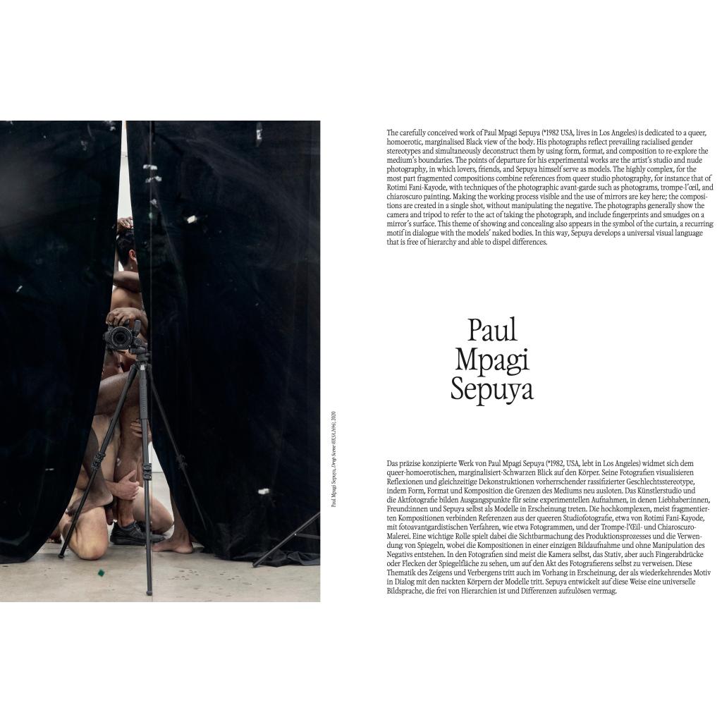 LOVE, MAYBE Sprache reicht selten aus, um den komplexen Zustand der Liebe zu beschreiben. Künstlerische Bilder erzählen uns zu diesem viel beschworenen Gefühl oftmals viel mehr, sie berühren, verführen und vermitteln zugleich. Ob in der klassischen Aktfotografie, dem privaten Fotoalbum oder in der Popkultur - seit jeher dient die Fotografie dazu, liebende, erotisierte Körper ins Bild zu setzen. Wie kann der moderne Mythos der Liebe kritisch untersucht werden und welche Darstellungen fehlen im kollektiven Gedächtnis, besonders mit Blick auf empathische Formen des Miteinanders jenseits der erotischen Liebe? Love, Maybe präsentiert neben multimedialen Installationen und skulpturalen Arbeiten insbesondere Fotografien, die einen subjektiven, radikalen, witzigen und kritischen Blick auf das Verständnis von Liebe, Erotik und Zärtlichkeit werfen. Die versammelten Arbeiten u. a. von Monica Bonvicini, Matthieu Croizier, Nan Goldin, Ren Hang, Gabby Laurent, Boris Mikhailov, Paul Mpagi Sepuya und Dayanita Singh erzählen auf so humorvolle wie verletzliche Art und Weise von Zweifel, Begehren und Intimität in all ihren Facetten. Mit einem Text der Kuratorin Dr. Jana J. Haeckel und einem Interview mit Paul Mpagi Sepuya. Ausstellung " Love, Maybe", Alexander Tutsek-Stiftung, München, Februar 2025. LOVE, MAYBE Words can rarely describe the complex state of mind we call love. Images created by artists often tell us much more about this vaunted feeling; they affect and seduce us while also teaching us something. Whether in classic nude photography, the private photo album, or pop culture, photography has always served to stage loving and eroticized bodies. How can the modern myth of love be subjected to critical examination, and which representations are missing from the collective memory, especially when it comes to empathetic forms of togetherness beyond erotic love? Love, Maybe spotlights multimedia installations, works of sculpture, and above all photographs that frame subjective, radical, witty, and critical perspectives on our notions of love, eroticism, and tenderness. The gathered works by Monica Bonvicini, Matthieu Croizier, Nan Goldin, Ren Hang, Gabby Laurent, Boris Mikhailov, Paul Mpagi Sepuya, Dayanita Singh, and others bring humor and vulnerability to the fore in telling stories of doubt, desire, and intimacy in all their facets. With an essay by curator Dr. Jana J. Haeckel and an interview with Paul Mpagi Sepuya. Exhibition " Love, Maybe", Alexander Tutsek-Stiftung, Munich, February 2025.
