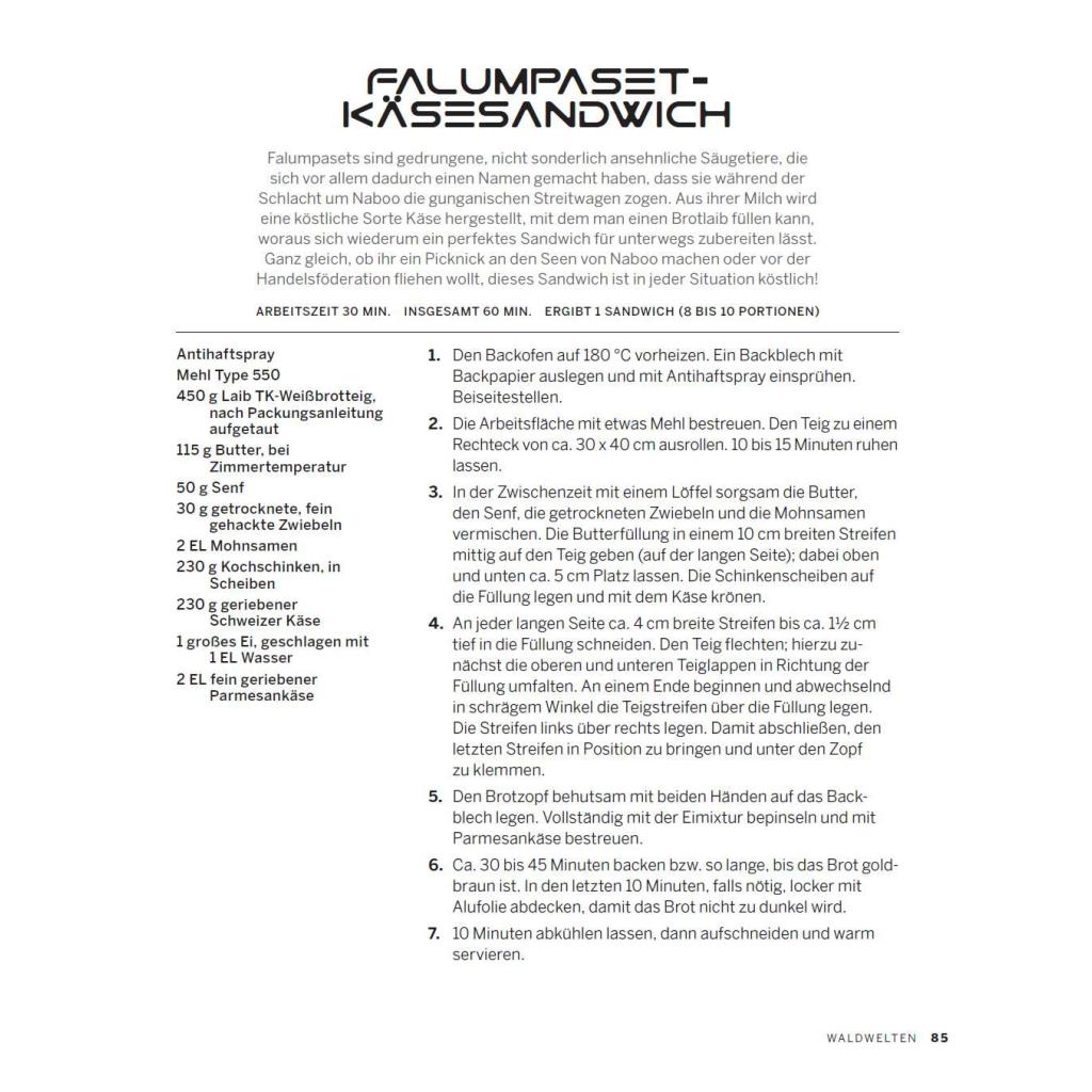 BRECHT ZU EINER KÖSTLICHEN REISE DURCH DIE STAR WARS-GALAXIS AUF UND ZAUBERT VERFÜHRERISCHE LECKEREIEN, INSPIRIERT VON DEN BELIEBTESTEN PLANETEN DER LEGENDÄREN WELTRAUMSAGA! Macht euch bereit, die Galaxis zu bereisen - mit diesem Backbuch, das euch geradewegs in die verschneiten Weiten des Eisplaneten Hoth, in die Wüste von Tatooine und in die üppigen Wälder von Endor versetzt! Diese offizielle Sammlung von über vierzig Rezepten der köstlichsten Backwaren zwischen dem Outer Rim und den Unbekannten Regionen ist ein Muss für jede Star Wars-Bibliothek! Bäcker aller Talentstufen - vom Padawan-Schüler bis zum Jedi-Meister - finden hier Rezepte für jeden Geschmack, u. a. für Wan-Taun-Tundrabissen, Meiloorun-Pasteten, Lebenstagskuchen, Keshianisches Gewürzbrot, Wolkenstadt-Marshmallows, Protonentorpedos, Karbonitküchlein und vieles mehr. Randvoll mit atemberaubenden Foodfotos, ist Galaktisch backen die unwiderstehlichste Art, die Planeten, die Flora und die Fauna der Star Wars-Galaxis zu erleben. Ganz gleich, ob ihr gerade bei der Rebellion Wache schiebt oder Mitglieder des Galaktischen Senats verköstigt, dieses Buch wird euch zu jedem Anlass gute Dienste leisten!