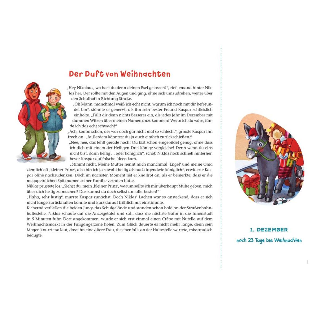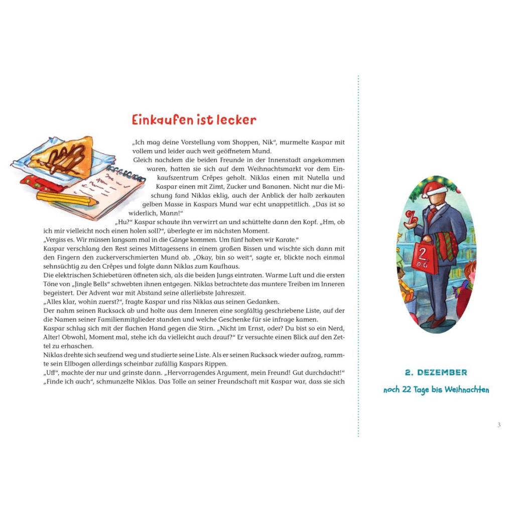Ein Buch-Adventskalender mit Poster zum Basteln für Kinder ab 7 Jahren - Vorlesen und kreativ sein Die Geschichte: Zwischen Weihnachtsmarkt, Adventsfeier und Nikolauswitzen stolpern die Freunde Niklas und Kaspar ganz unverhofft in einen spannenden Kriminalfall. Was es wohl mit dem Kaufhaus-Weihnachtsmann auf sich hat? Und wo ist bloß der wertvolle Diamantring geblieben, nach dem alle suchen? Ein klarer Fall für Niklas und Kaspar! Für jeden Tag im Advent enthält das Adventskalenderbuch, neben einem Kapitel der spannenden Abenteuergeschichte zum Lesen, auch ein Bild, das du ausschneiden und auf das große Poster kleben kannst. An Heiligabend ist das Poster dann komplett und der Fall gelöst! Ein Adventskalender als Buch: ¿ Eine Geschichte für Kinder: Ein weihnachtliches Krimi-Abenteuer spannend in 24 Kapiteln erzählt. ¿ Mit bunt illustriertem Poster: Auf dem sich noch viele freie Stellen befinden. Die Kinder können so jeden Tag den passenden Ausschnitt aus dem Heft ausschneiden und auf das Poster kleben, so entsteht nach und nach ein komplettes Bild. ¿ Für Mädchen und Jungen ab 7 Jahren: Zum Vorlesen oder selbst Lesen geeignet. ¿ Schön auch zum Vorlesen in der Runde: In der Familie, der Schule, der Gemeinde, ... ¿ Lustige Illustrationen: Enthalten im Kinderbuch - passend zur Weihnachtsgeschichte. Bei dieser Adventskalendergeschichte heißt es jeden Tag im Advent: Eintauchen und mitmachen. Ein schönes Geschenk und eine tolle Beschäftigung für die Vorweihnachtszeit und den Advent - ganz ohne Schokolade und ohne Vorbereitungen!