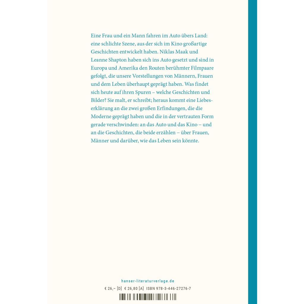 Ein Mann und eine Frau fahren im Auto übers Land: eine schlichte Szene, aus der sich im Kino großartige Geschichten entwickelt haben. Niklas Maak und Leanne Shapton haben sich ins Auto gesetzt und sind in Europa und Amerika den Routen berühmter Filmpaare gefolgt, die unsere Vorstellungen von Männern, Frauen und dem Leben überhaupt geprägt haben. Was findet man heute auf den Spuren von legendären Filmen wie Claude Lelouchs "Ein Mann und eine Frau" - welche Geschichten und Bilder? Sie malt, er schreibt; so entsteht ein überraschendes Bild unserer Gegenwart und eine Liebeserklärung an die zwei großen Erfindungen, die die Moderne geprägt haben und die in der uns vertrauten Form gerade verschwinden: an das Auto und das Kino - und an die Geschichten, die es darüber erzählt, wie das Leben sein könnte.