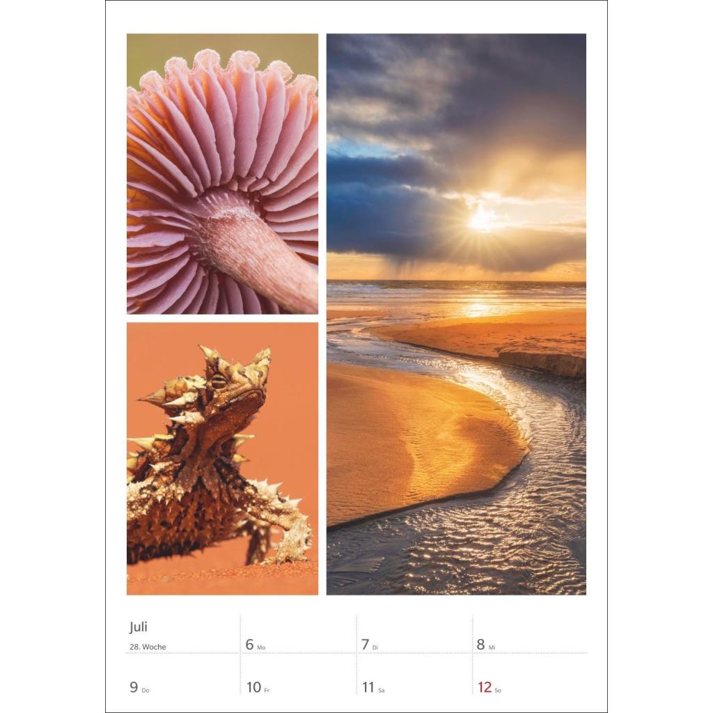 Kalender mit Fotos, die die Farben der Natur meisterhaft zur Geltung bringen. Praktischer Wandplaner mit hochwertigen Naturaufnahmen