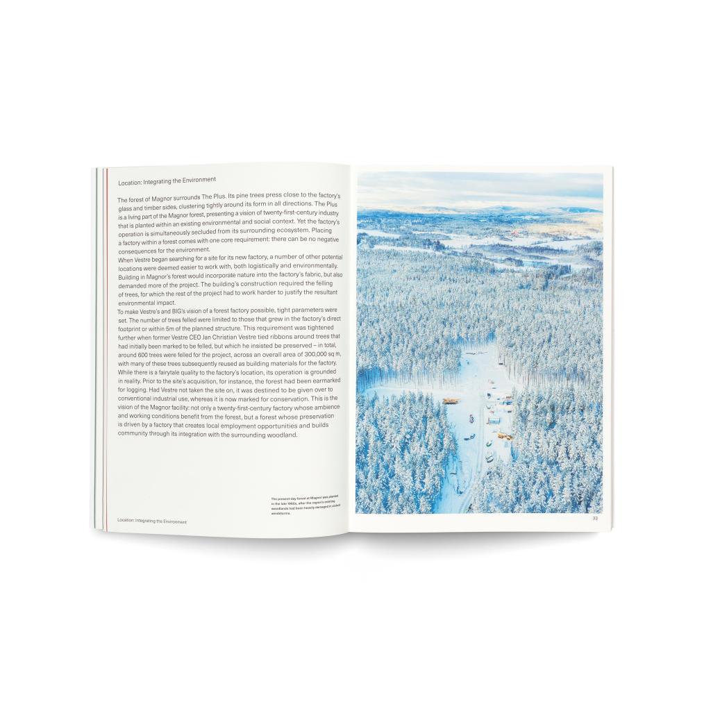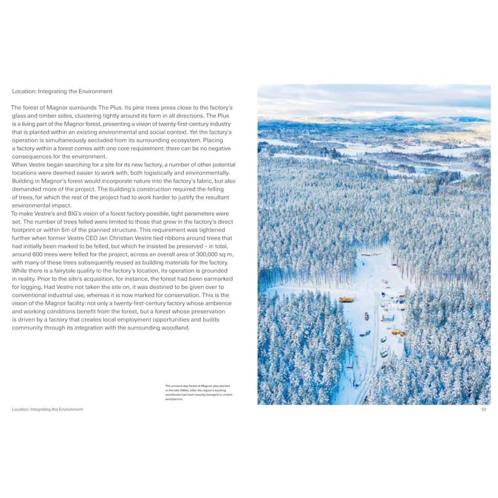 Industrial factories are major contributors to air pollution, toxic spills, and the emission of greenhouse gasses into the atmosphere. Manufacturing remains critically important to both the developing and the advanced world, but it must change. Fast. In 2020, the Norwegian design furniture manufacturer Vestre decided to prove that another future of industrial production is possible. Together with the Danish architects of Bjarke Ingels Group (BIG) they worked out plans for a green factory while preserving the surrounding recreational Norwegian forests: The Plus. The wooden building has been planned to achieve the world's highest sustainability rating, BREEAM Outstanding, as well as to be a public space, a destination for people to visit and enjoy. Thus began a challenging yet exciting journey toward building "the world's most environmentally friendly furniture factory." Making The Plus takes readers through the construction process of the world's most environmentally friendly furniture factory, documented from the very beginning by renowned photographer Einar Aslaksen. It also broadens our view on how architecture, industry, nature, and public space must be completely intertwined in our move toward a sustainable future. It aims to be a manifesto for the "green shift." VESTRE is an Oslo-based urban furniture maker with offices all over the world. For more than 75 years, the family-owned company has been driven by the mission to create social and caring public meeting places for millions of people. It is committed to the UN's Sustainable Development Goals.