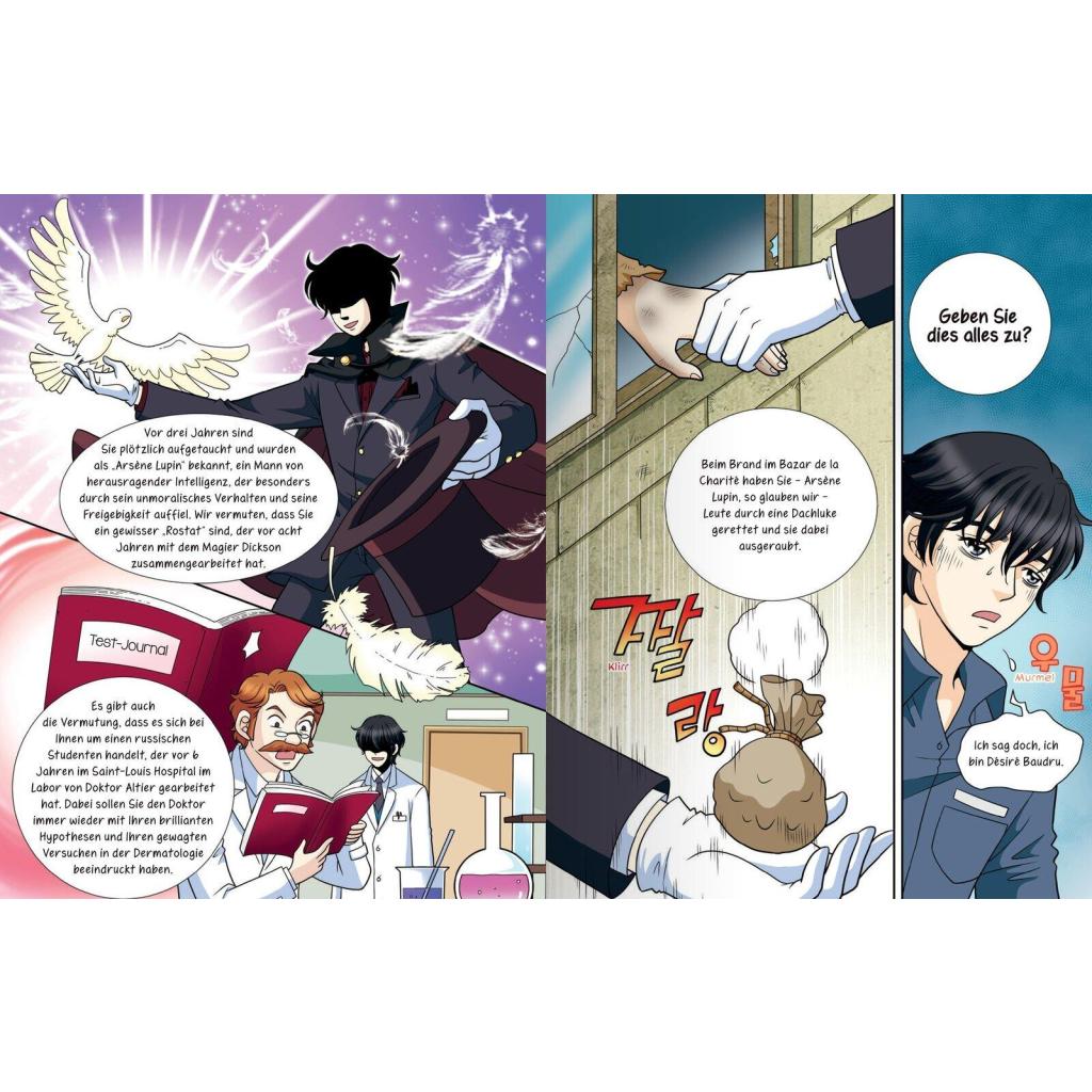 Sherlock Holmes muss man nicht lange bitten, um Ermittlungen aufzunehmen: Je verzwickter und unlösbarer die Herausforderung erscheint, desto mehr ist sein detektivischer Ehrgeiz herausgefordert. Als Meister der Verkleidung, mit unerschöpflichem Wissen und messerscharfem Verstand ist er stets rechtzeitig vor Ort und kein Detail entgeht ihm. Ob beim Skandal in Böhmen, der Liga der Rotschöpfe oder dem gefleckten Halsband, man kommt aus dem Staunen nicht mehr heraus. Ausgewählte Fälle von Conan Doyles Meisterdetektiv liegen nun endlich in einer zeitgemäßen Manhwa-Version für junge Leser vor. Die Titel dieser Reihe zeigen Klassiker der Kinder- und Jugendliteratur im angesagten Stil koreanischer Manhwas: Junge koreanische Künstler nehmen sich der bekannten, beliebten Stoffe an und überführen sie in durchgehend vierfarbige Bildergeschichten, bei denen auch der Text inner- und außerhalb der Sprechblasen nicht zu kurz kommt. Alice im Wunderland und Heidi, Arsene Lupin und Sherlock Holmes erwachen so auf 192 durchgehend farbig illustrierten Seiten als Manhwa-Figuren neu zum Leben. Die Reihe ist konzipiert, den Klassikern sowohl neue als auch ältere Leser zu erschließen und wird fortgesetzt. ¿ Ausgewählte Fälle des Meisterdetektivs im koreanischen Manhwa-Stil ¿ Leichter Zugang zu Weltliteratur für junge Leser ¿ Durchgehend vierfarbig